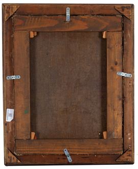 Dipinto olio su tela raffigurante "SANTA LUCIA". XVIII secolo. In cornice. Restauri. Già rintelato e rintelaiato.