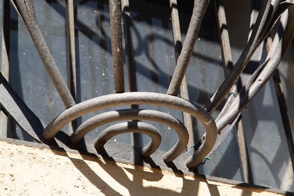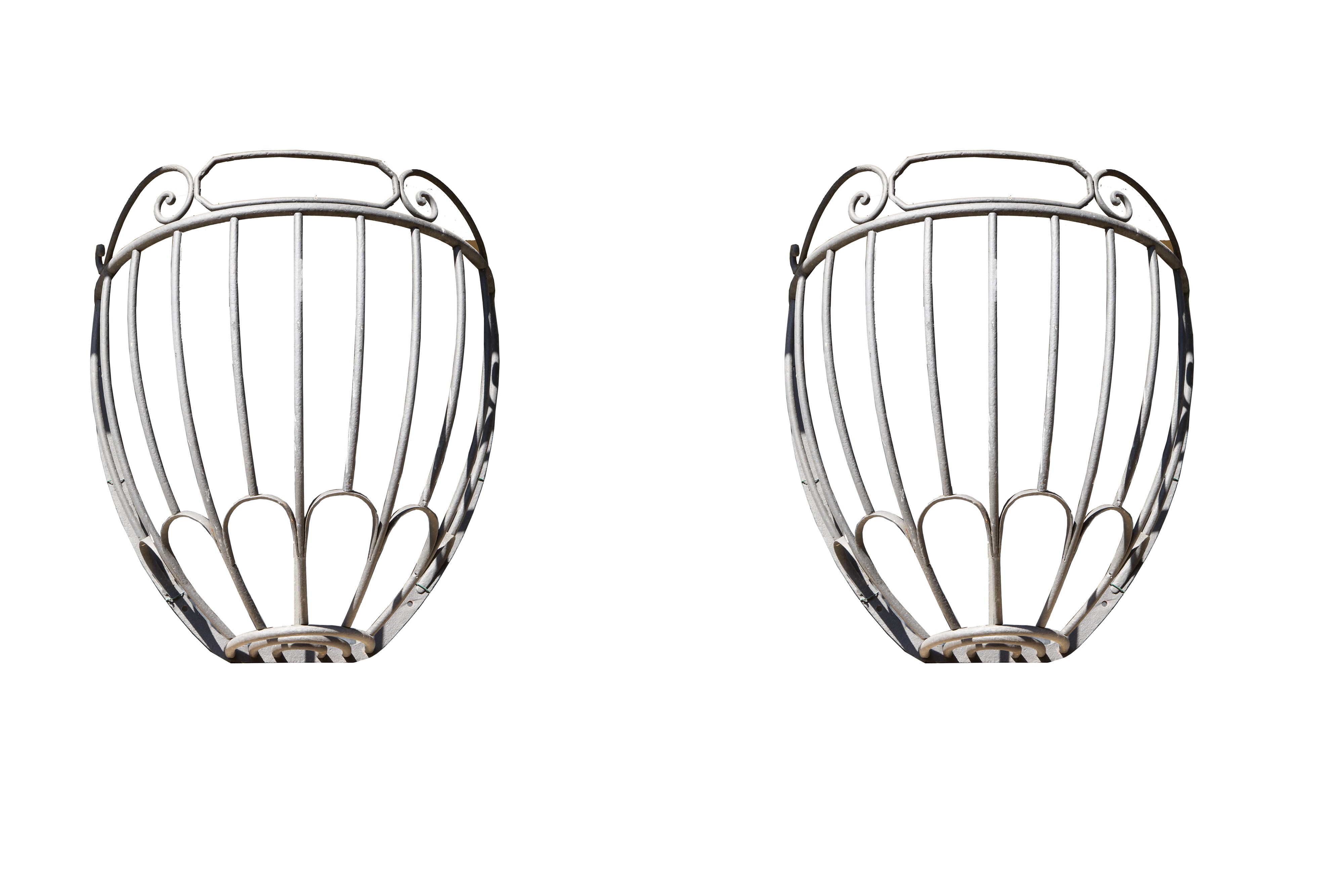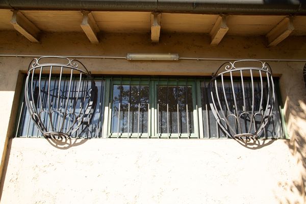 Due mangiatoie pensili con fregio in ferro. Difetti.