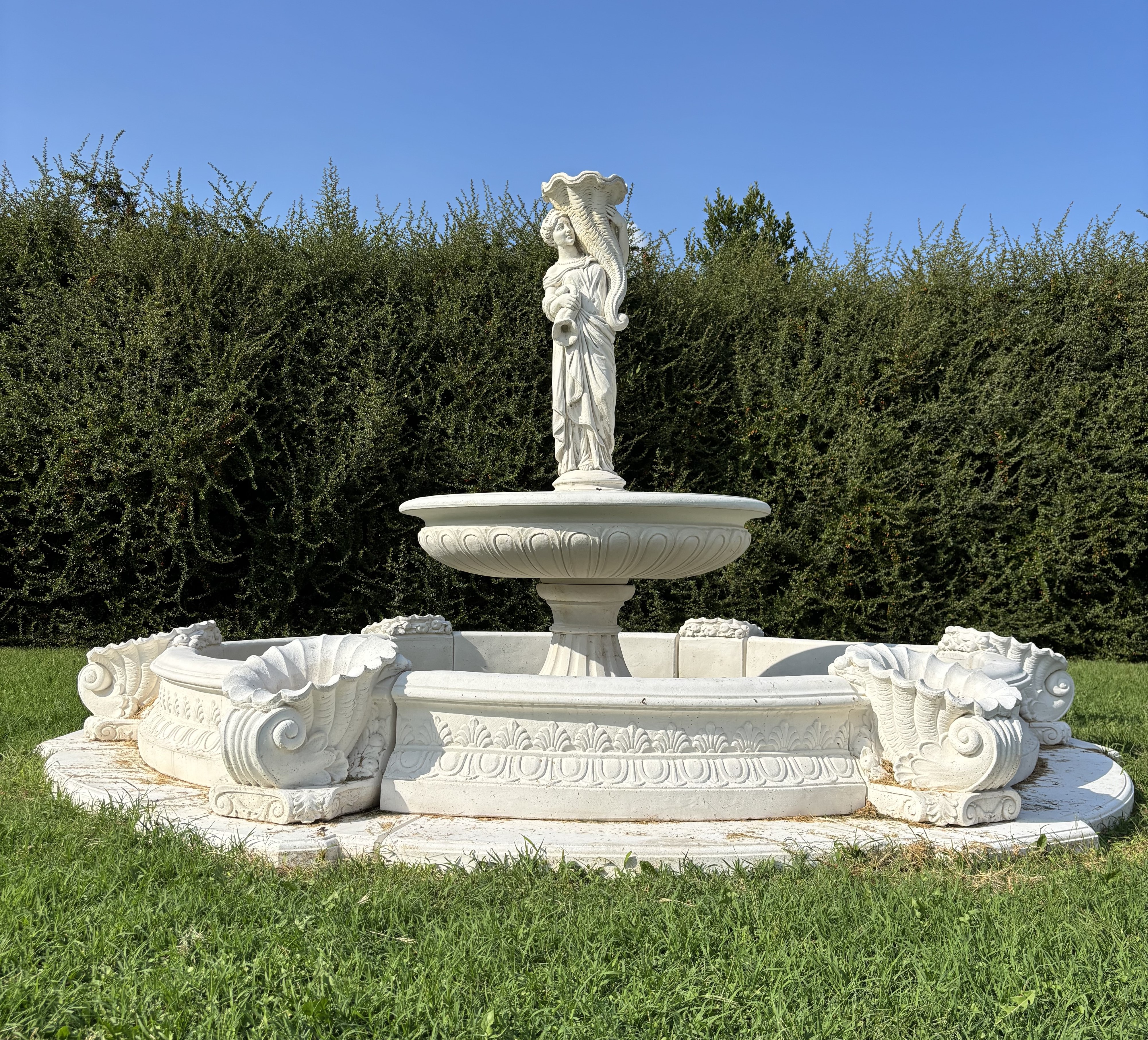 Grande fontana in agglomerato di pietra con scultura raffigurante "DORIDE".