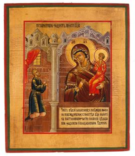 Icona raffigurante "MADONNA GIOIA INASPETTATA". Russia. Metà XIX secolo.