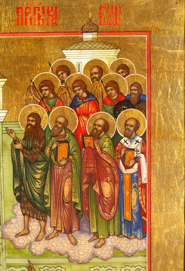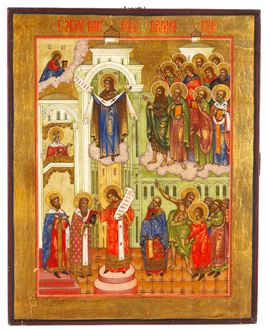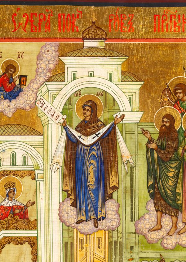 Icona fondo oro raffigurante "PROTEZIONE DELLA VERGINE". Russia. XIX secolo.
