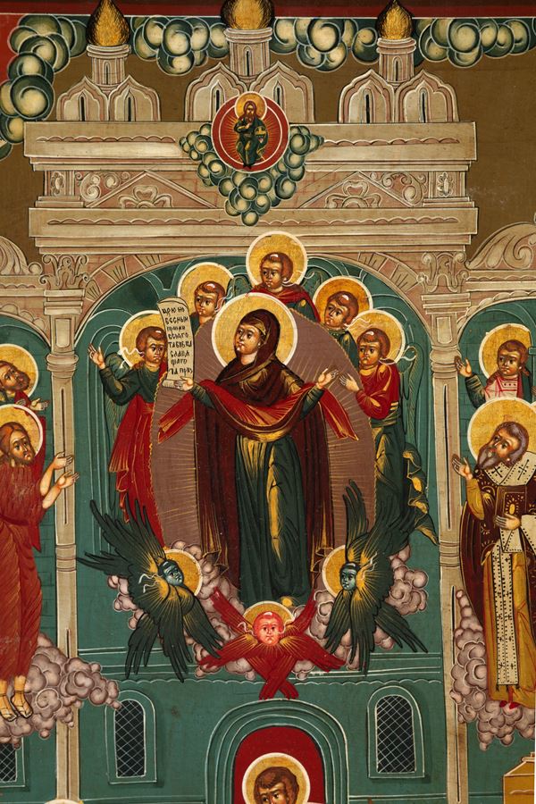 Icona raffigurante "PROTEZIONE DELLA VERGINE". Russia. Seconda metà del XIX secolo.