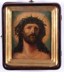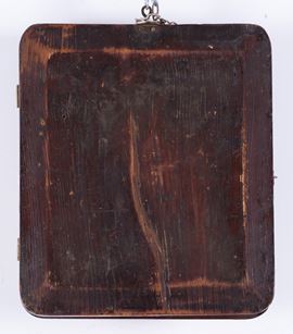 Icona raffigurante "VOLTO DI CRISTO". In teca. Russia. XIX secolo.