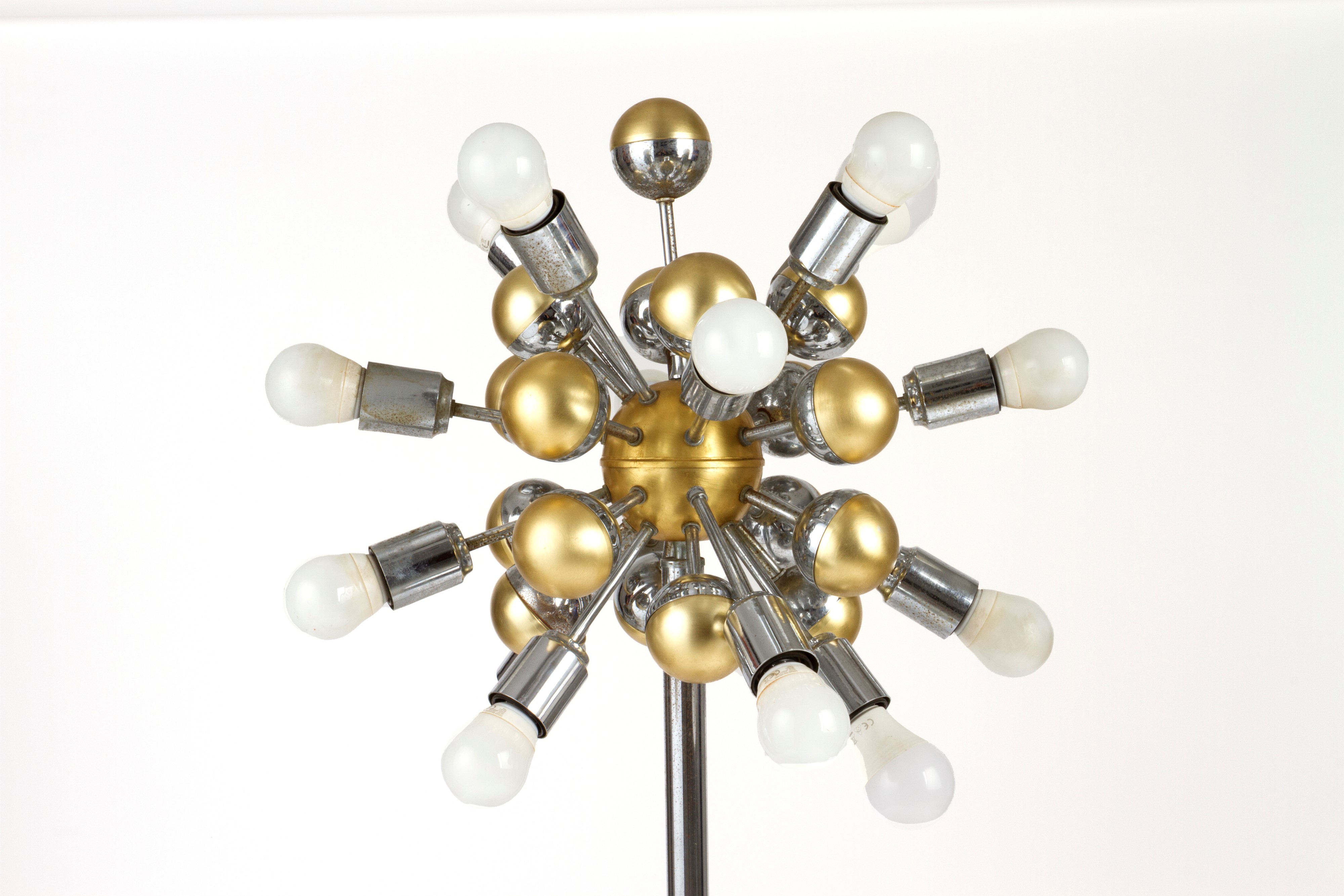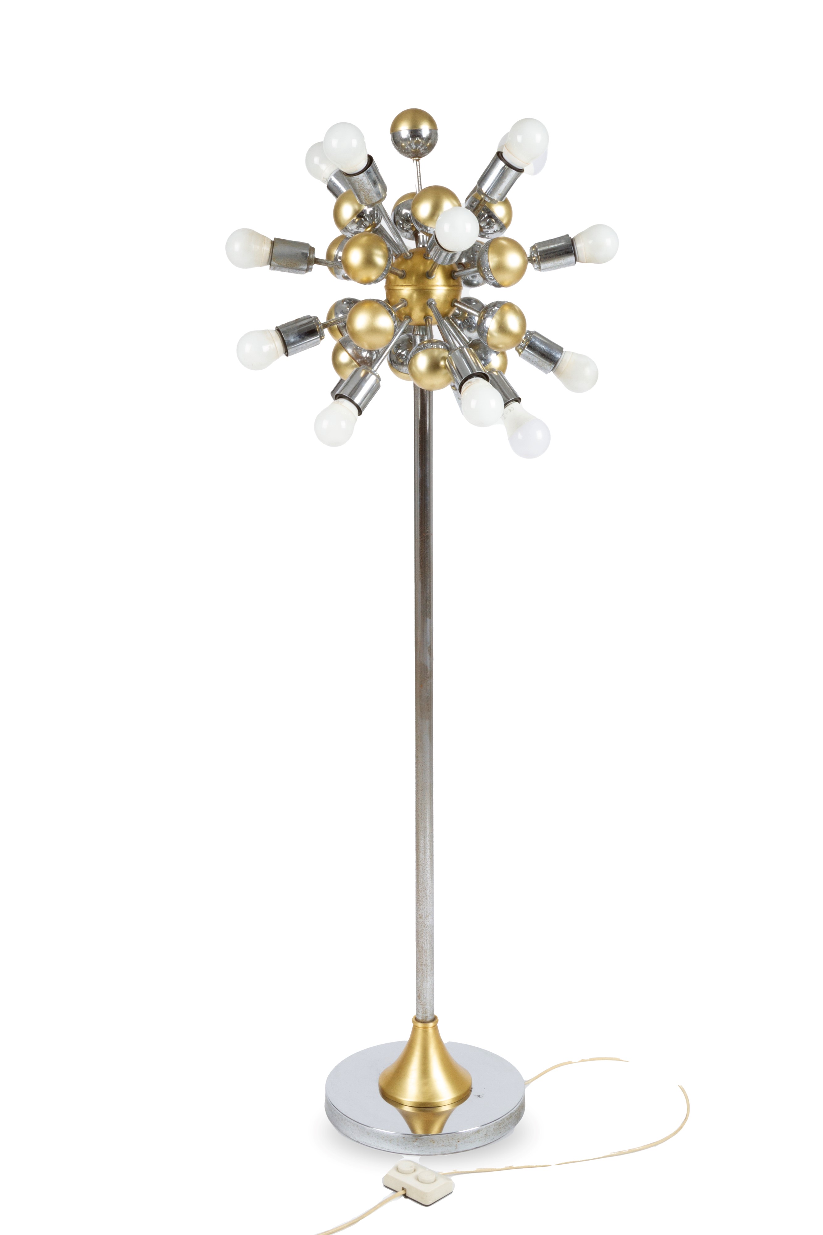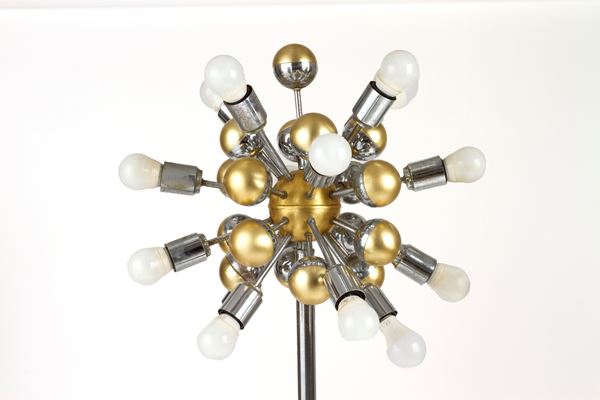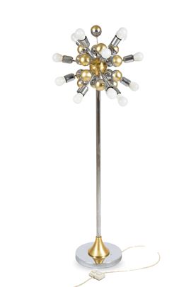 Lampada da terra in acciaio e ottone. Manifattura italiana. Anni '70.