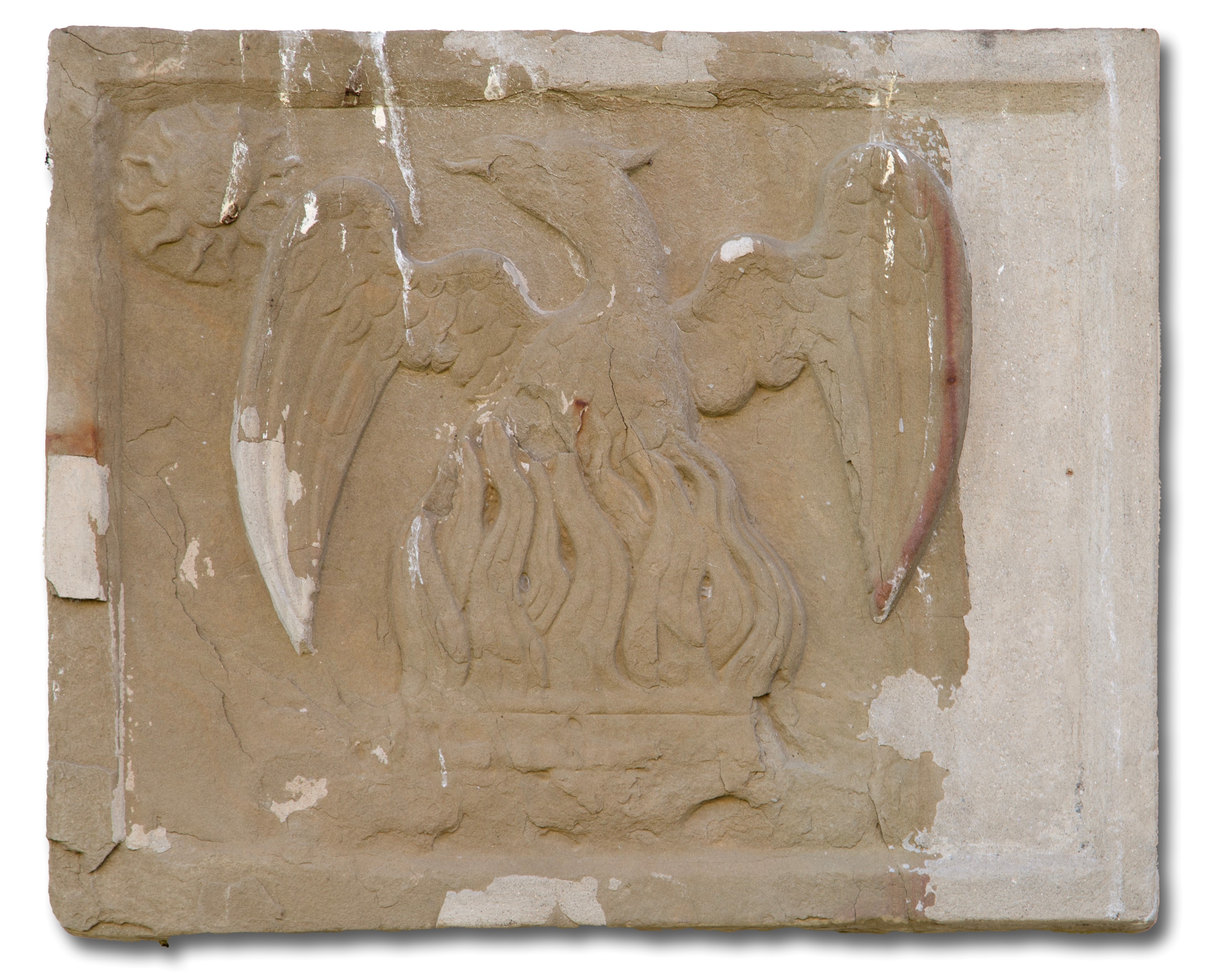 Lastra in pietra con aquila e fiamme