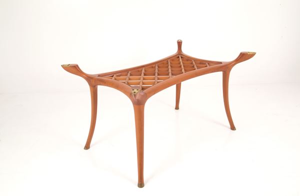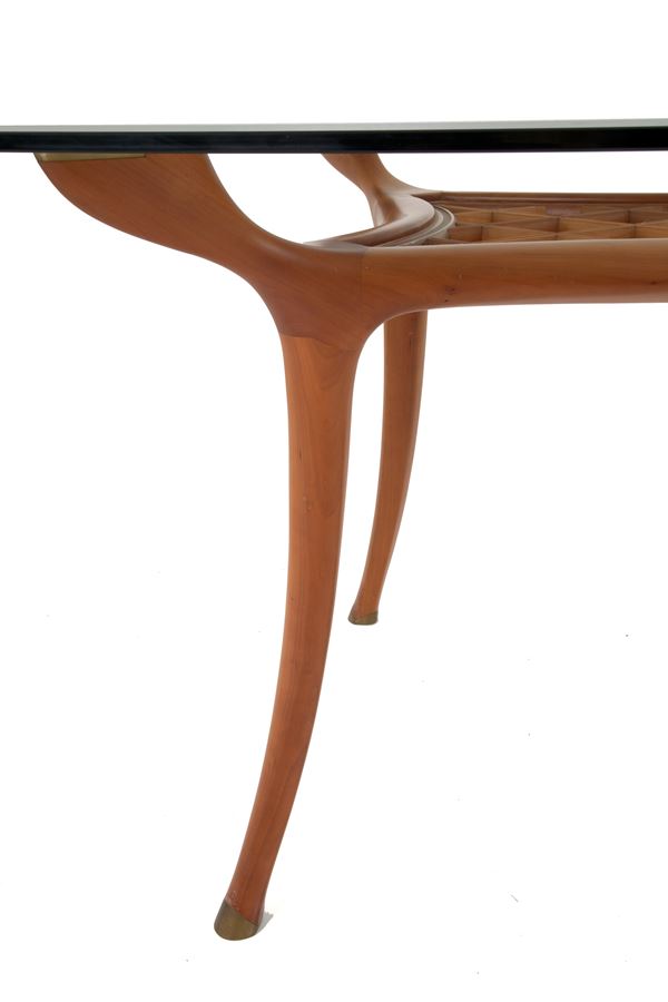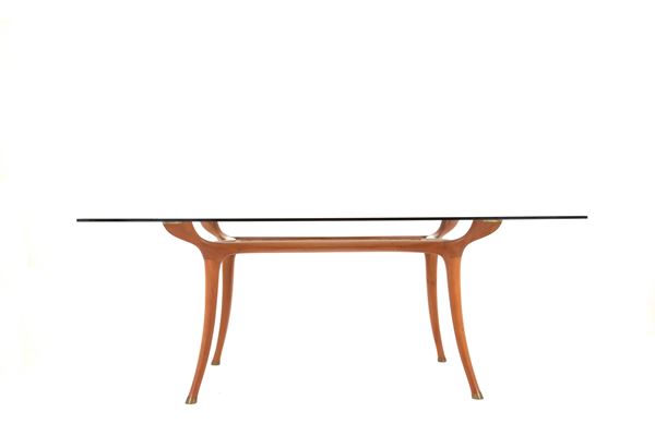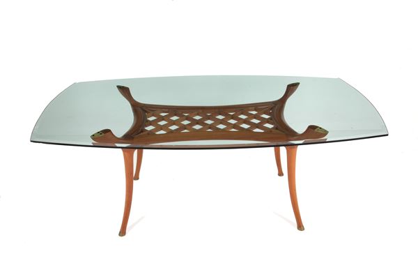 Tavolo modello Camarillo Brillo con piano in cristallo temperato. Produzione CECCOTTI COLLEZIONI. Anni '80. Lievi difetti.