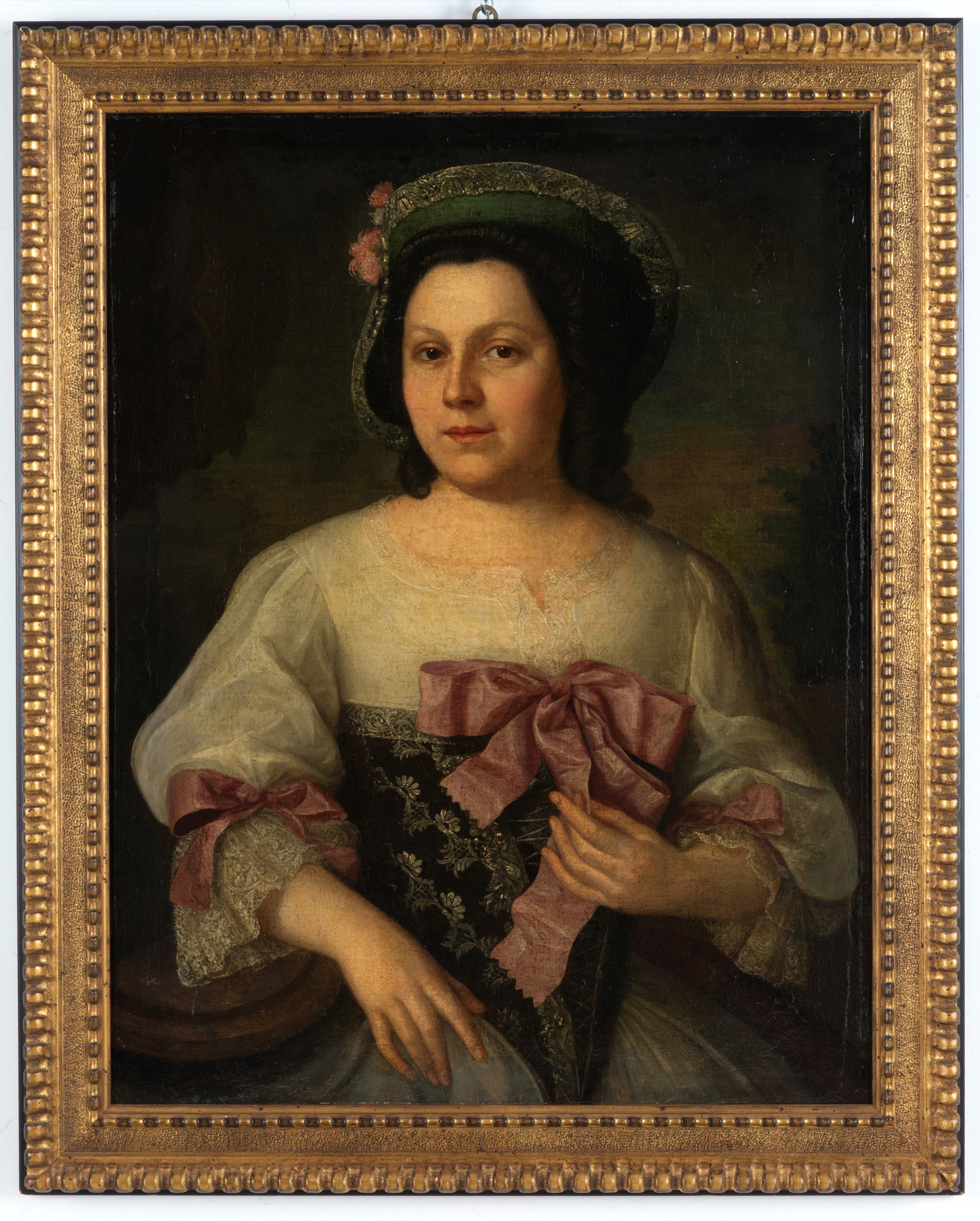 Dipinto olio su tela raffigurante "RITRATTO DI GENTILDONNA". Firmato sul retro. Lievi restauri. In cornice dorata non coeva. Già rintelato e rintelaiato.