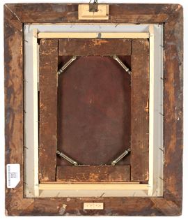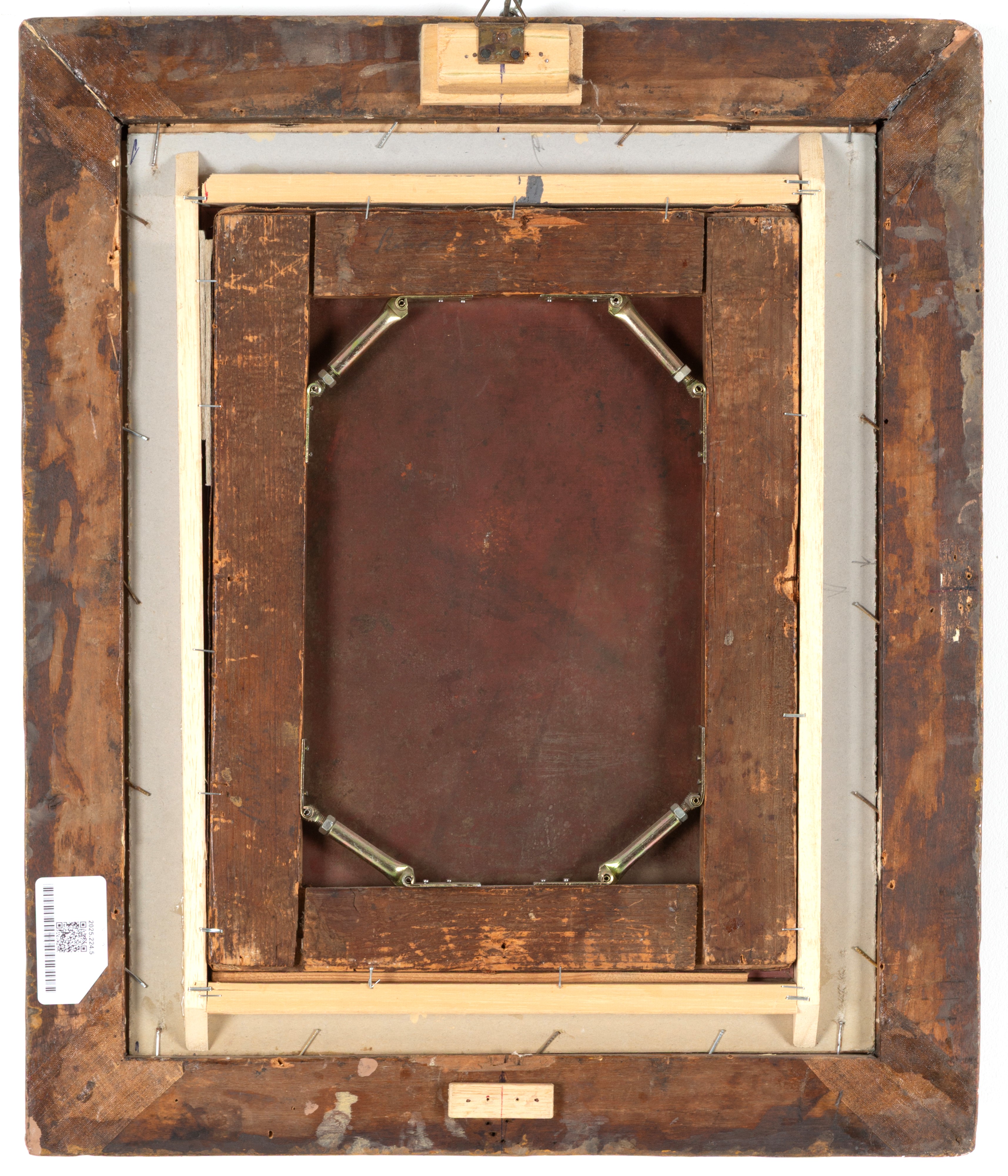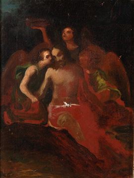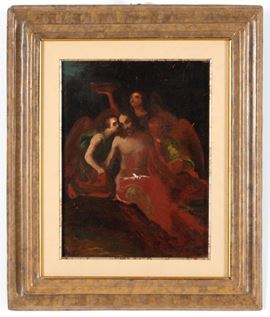 Bozzetto olio su tela raffigurante "DEPOSIZIONE". Firmato in basso a destra. In cornice in legno laccato. Restauri.