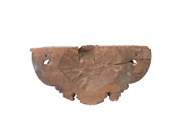 Mascherone in legno finemente intagliato. XVII secolo. Difetti e rotture.