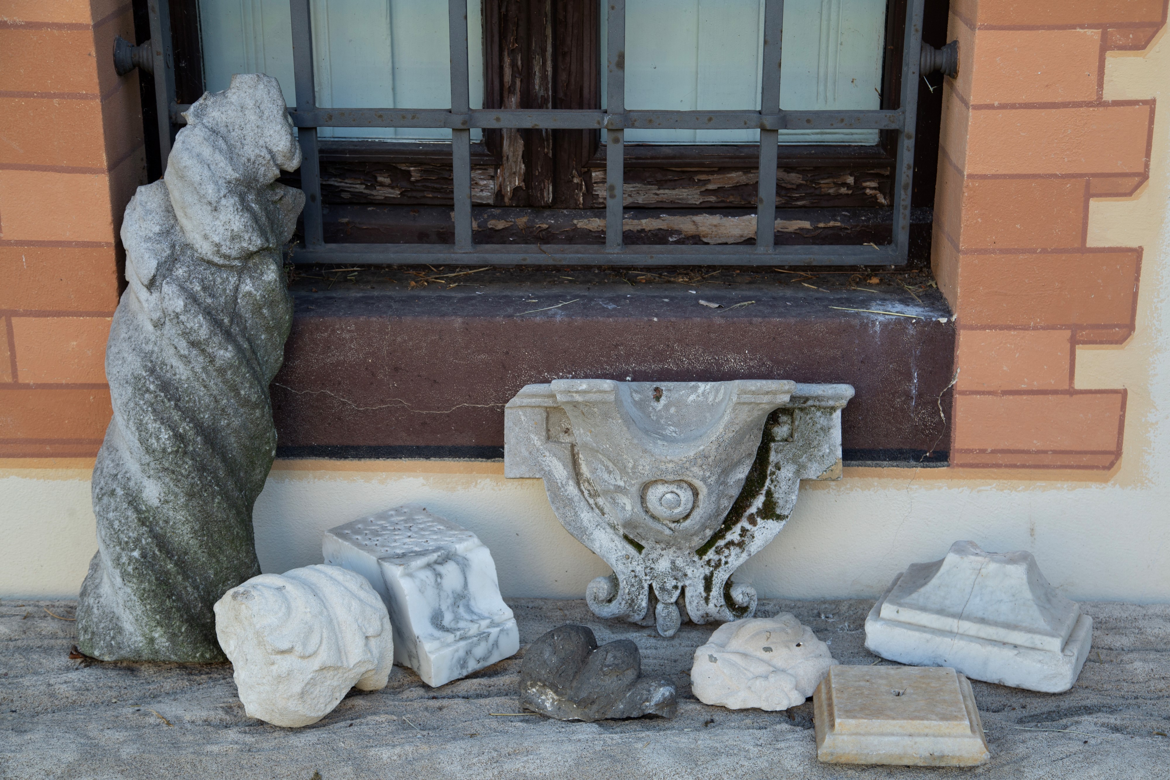 Otto frammenti in marmo e pietra. Difetti e mancanze.