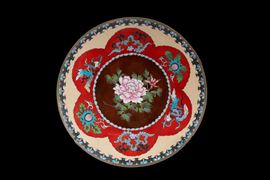 Piatto cloisonné decorato con fiori e volatili. Giappone.