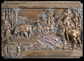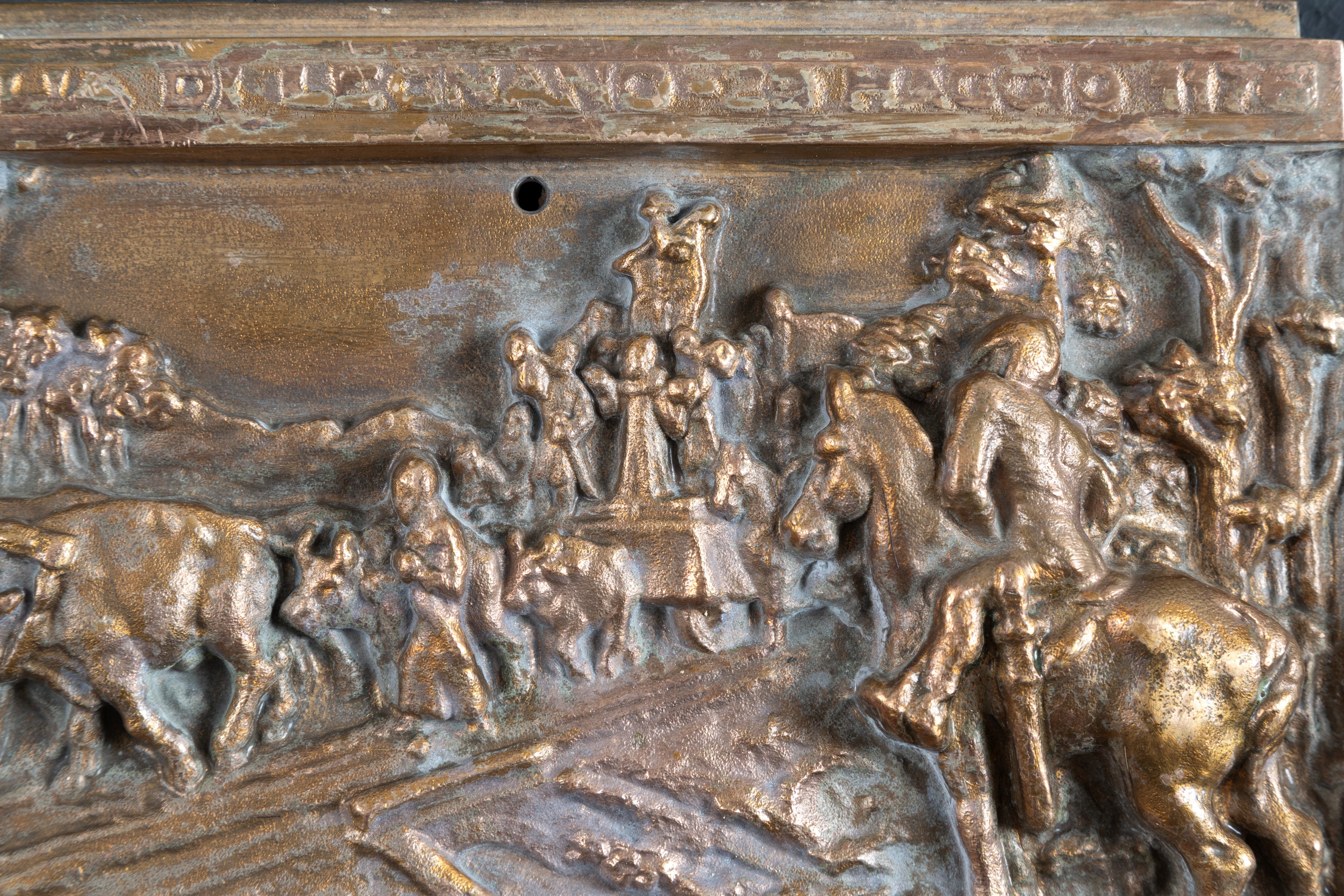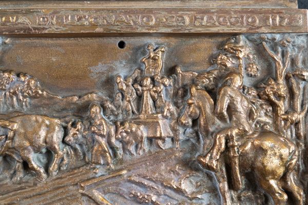Placca in bronzo dorato raffigurante "BATTAGLIA DI LEGNANO". XX secolo.