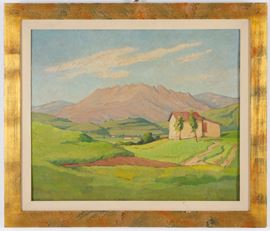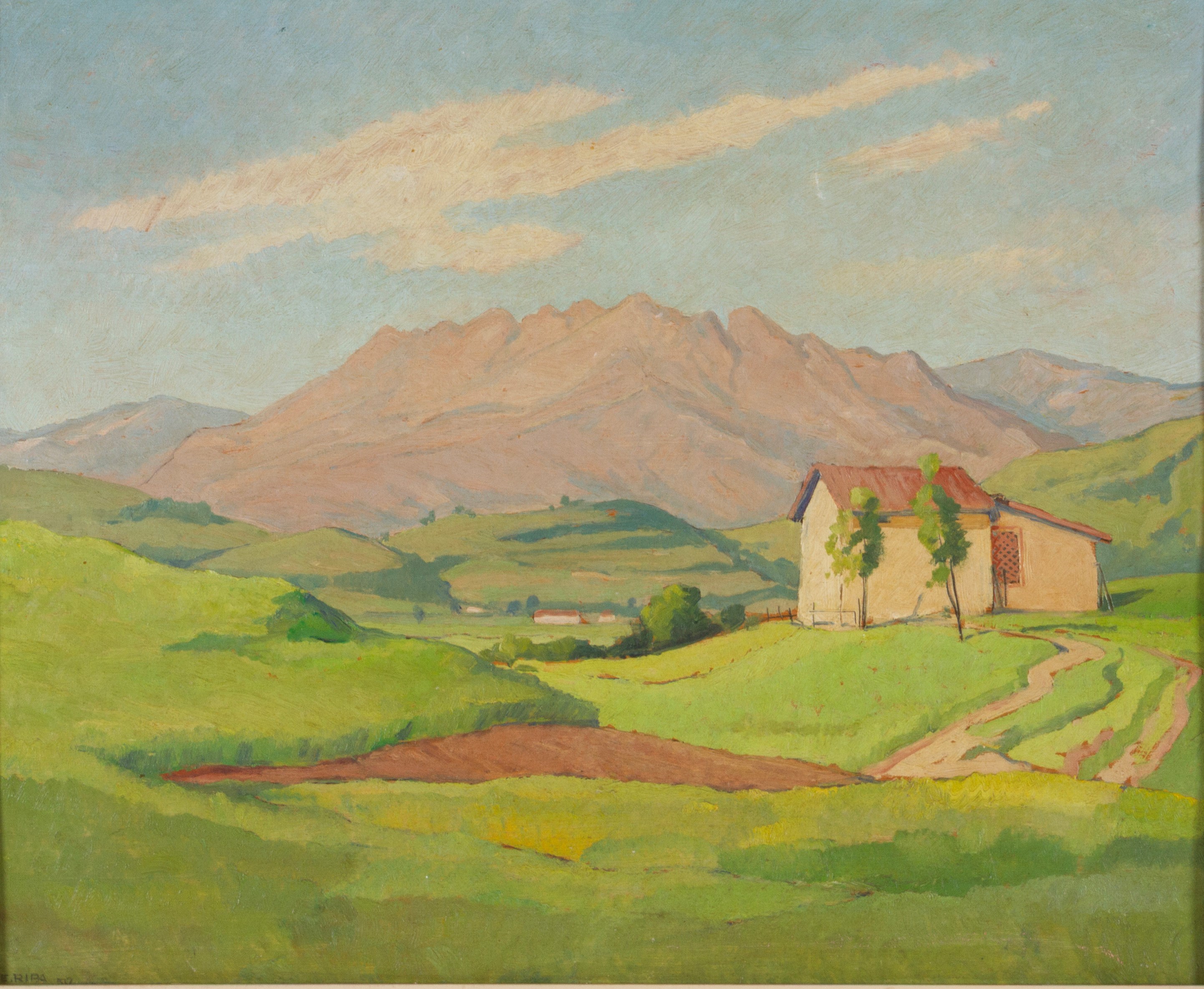 Dipinto olio su tavoletta raffigurante "RESEGONE". Firmato e datato '50 in basso a sinistra. In cornice.