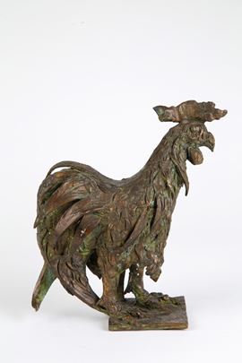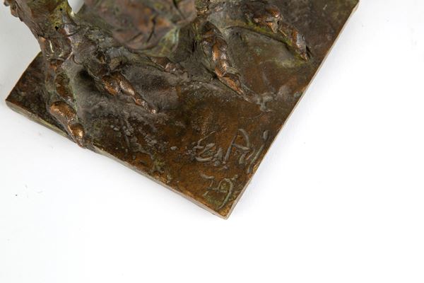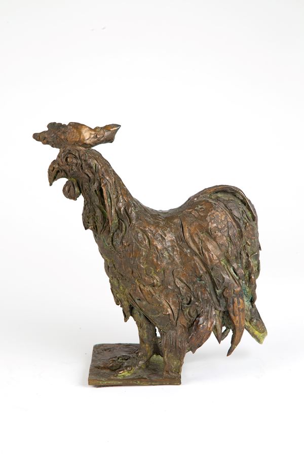 Scultura in bronzo raffigurante "GALLO". Firma non identificata e data 79 alla base.