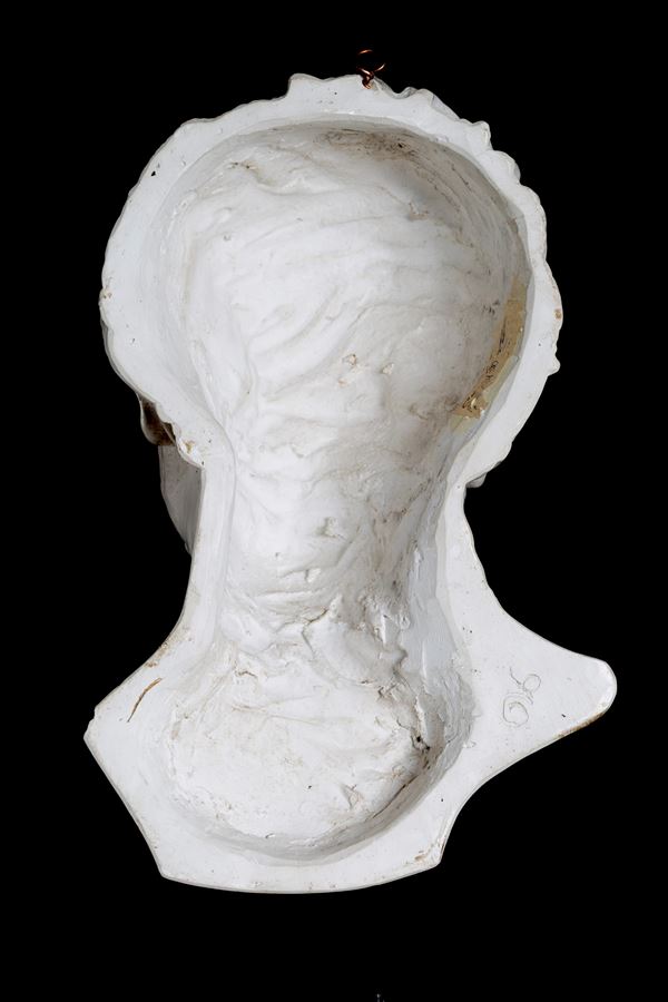 Scultura in gesso raffigurante "VOLTO MASCHILE". XX secolo. Lievi difetti.