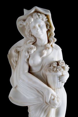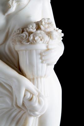 Scultura in marmo "FIGURA FEMMINILE VELATA CON CESTA DI FIORI"