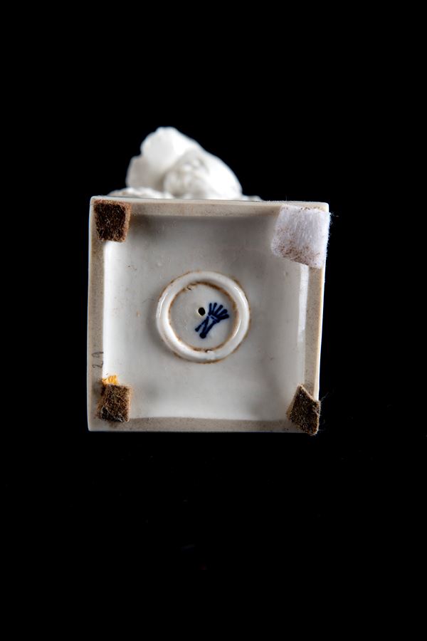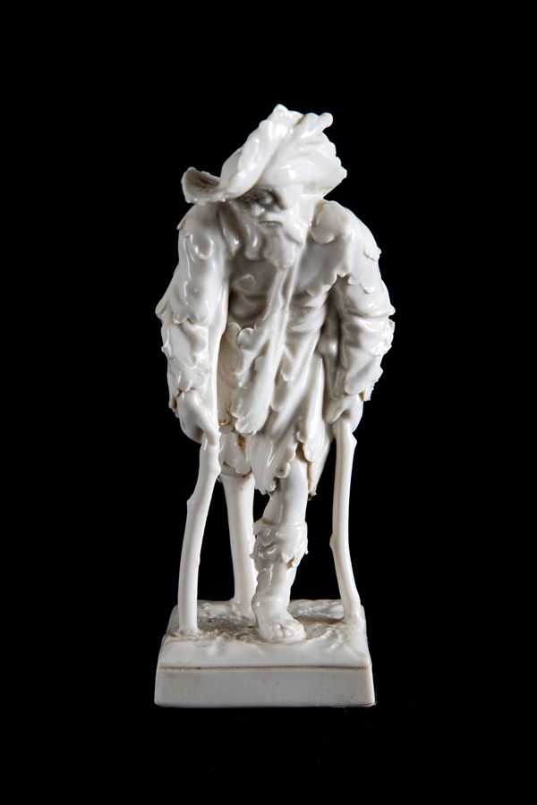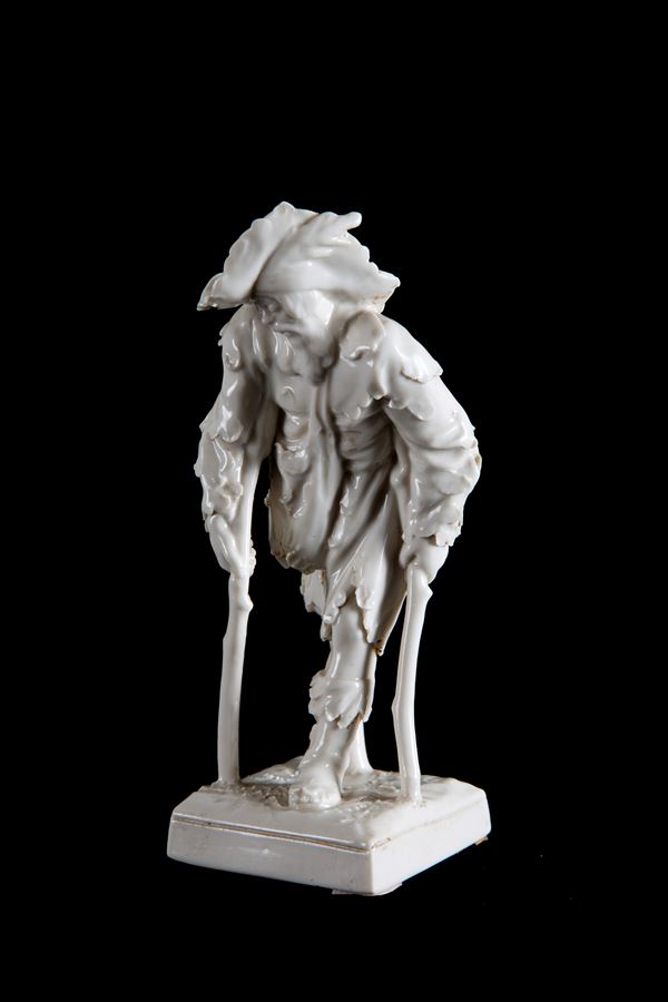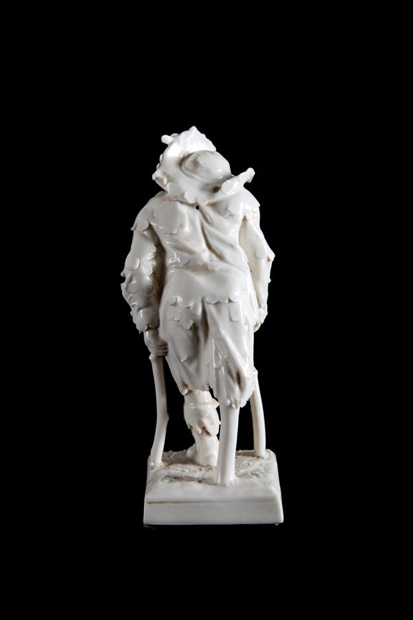 Scultura in porcellana bianca raffigurante “MENDICANTE”. Manifattura CAPODIMONTE. Marcato sul fondo. XX secolo.