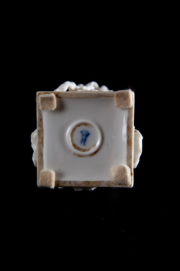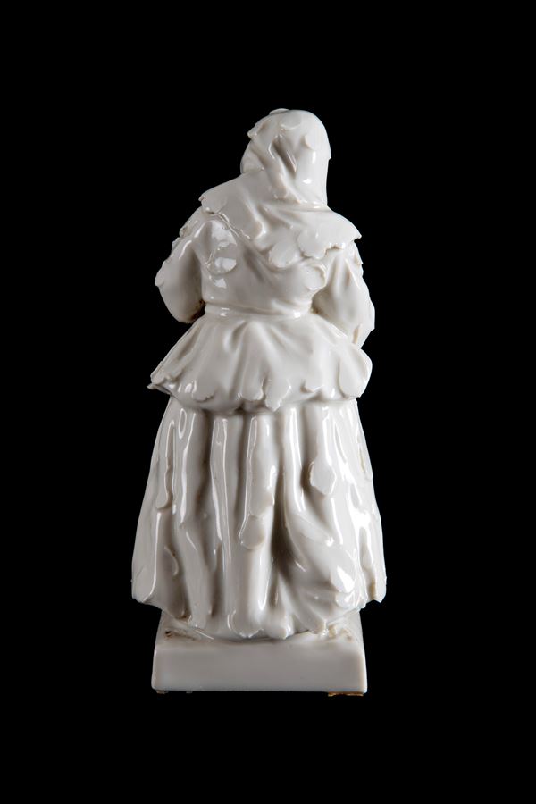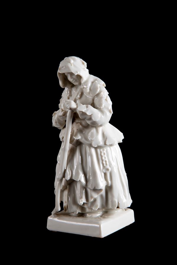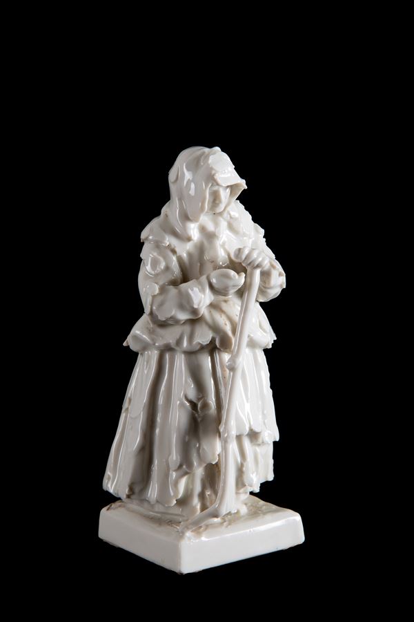 Scultura in porcellana bianca raffigurante “MENDICANTE”. Manifattura CAPODIMONTE. Marcato sul fondo. XX secolo.