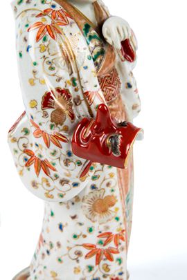 Scultura in porcellana raffigurante "OKAMI CON MASCHERA TENGU". Giappone. Periodo Meiji. Lievi difetti.