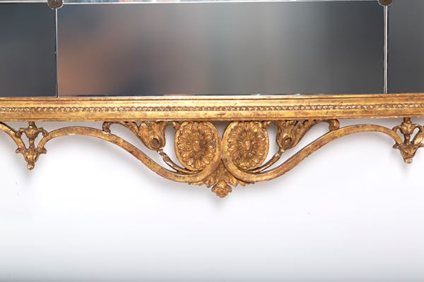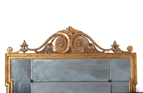 Specchiera in legno intagliato e dorato. XIX secolo. Difetti.