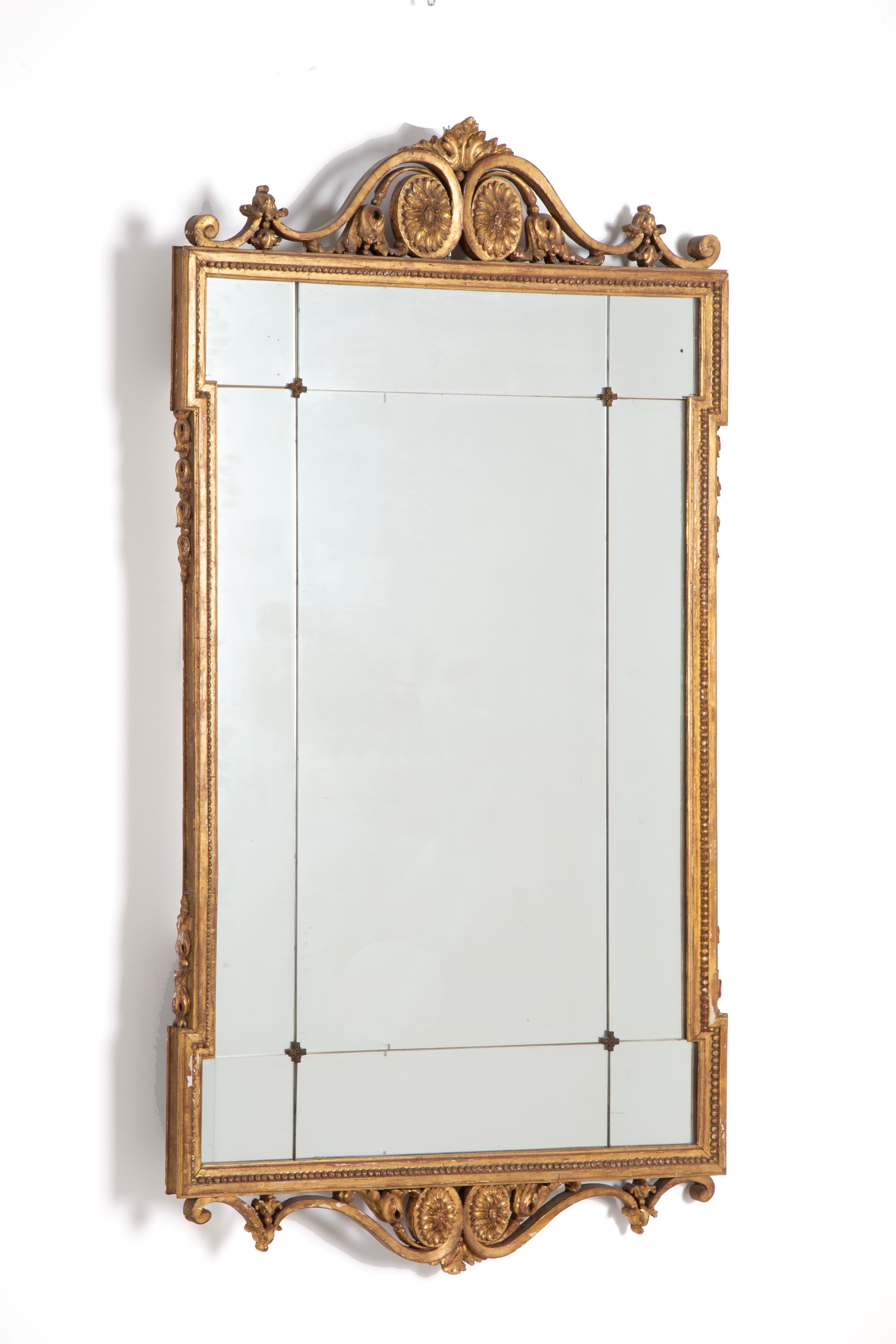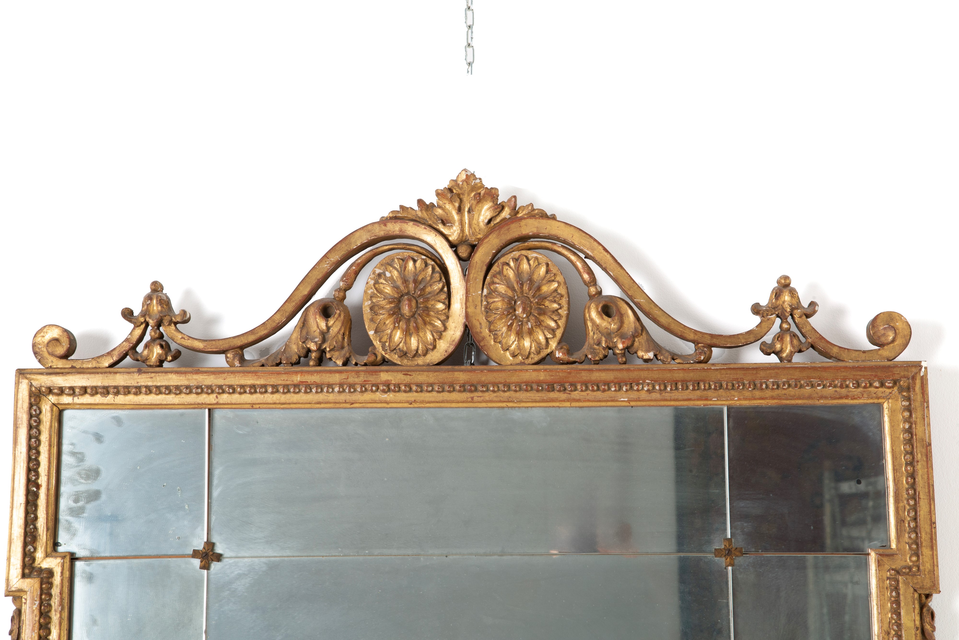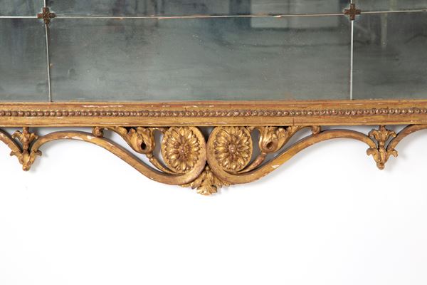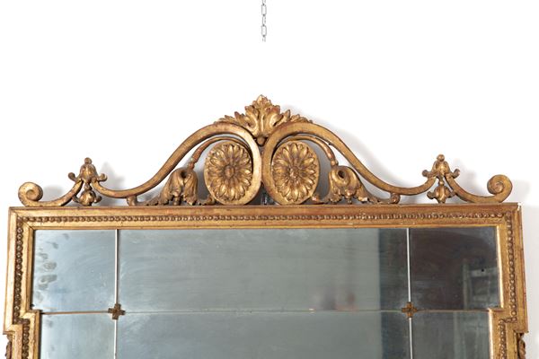 Specchiera in legno intagliato e dorato. XIX secolo. Difetti.