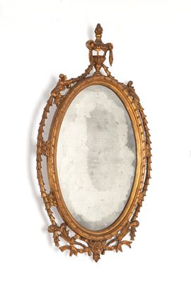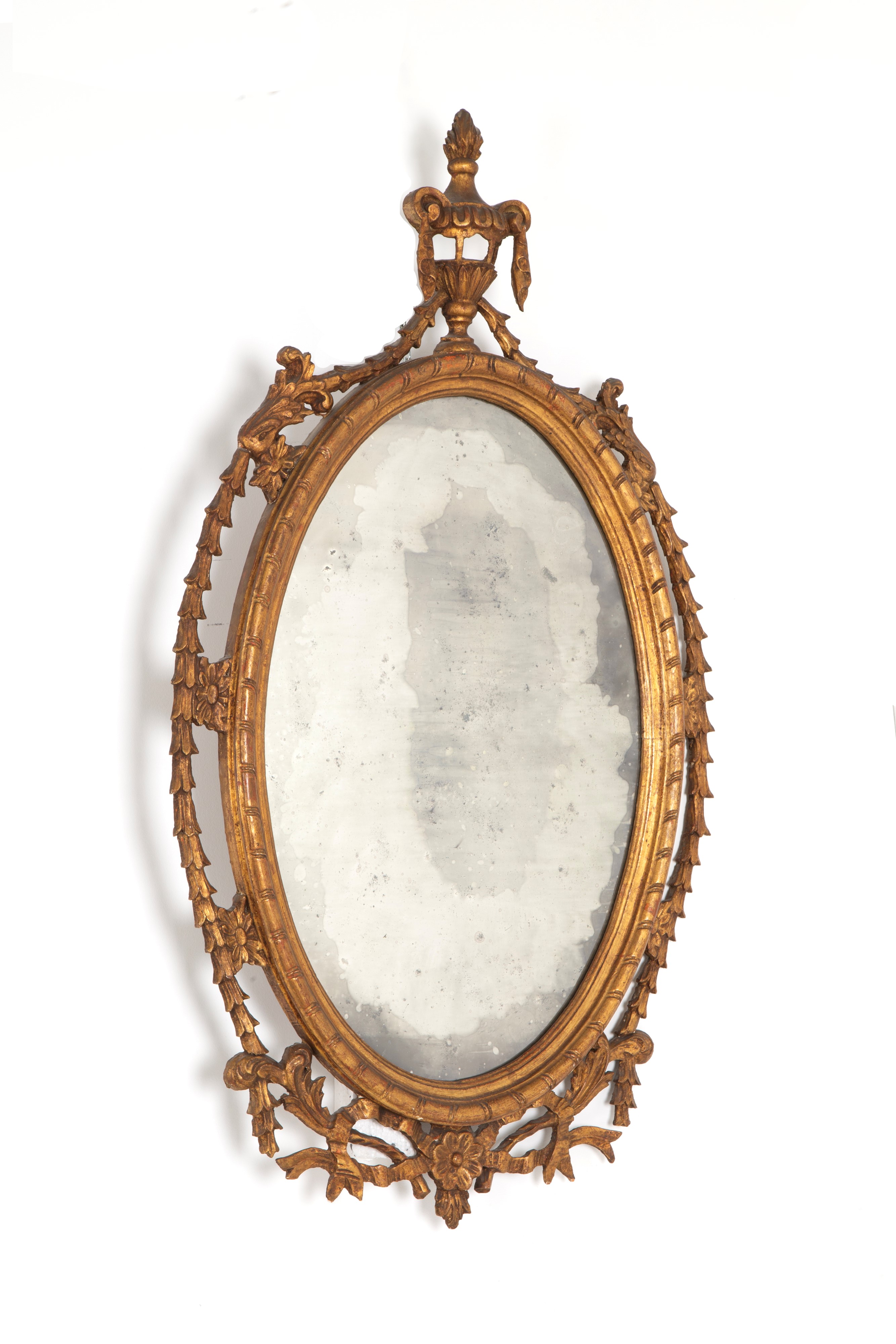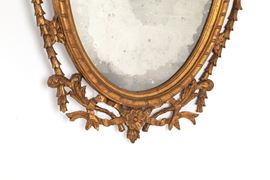 Specchiera ovale in legno intagliato e dorato. Inizi XX secolo. Lievi difetti.