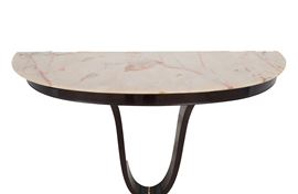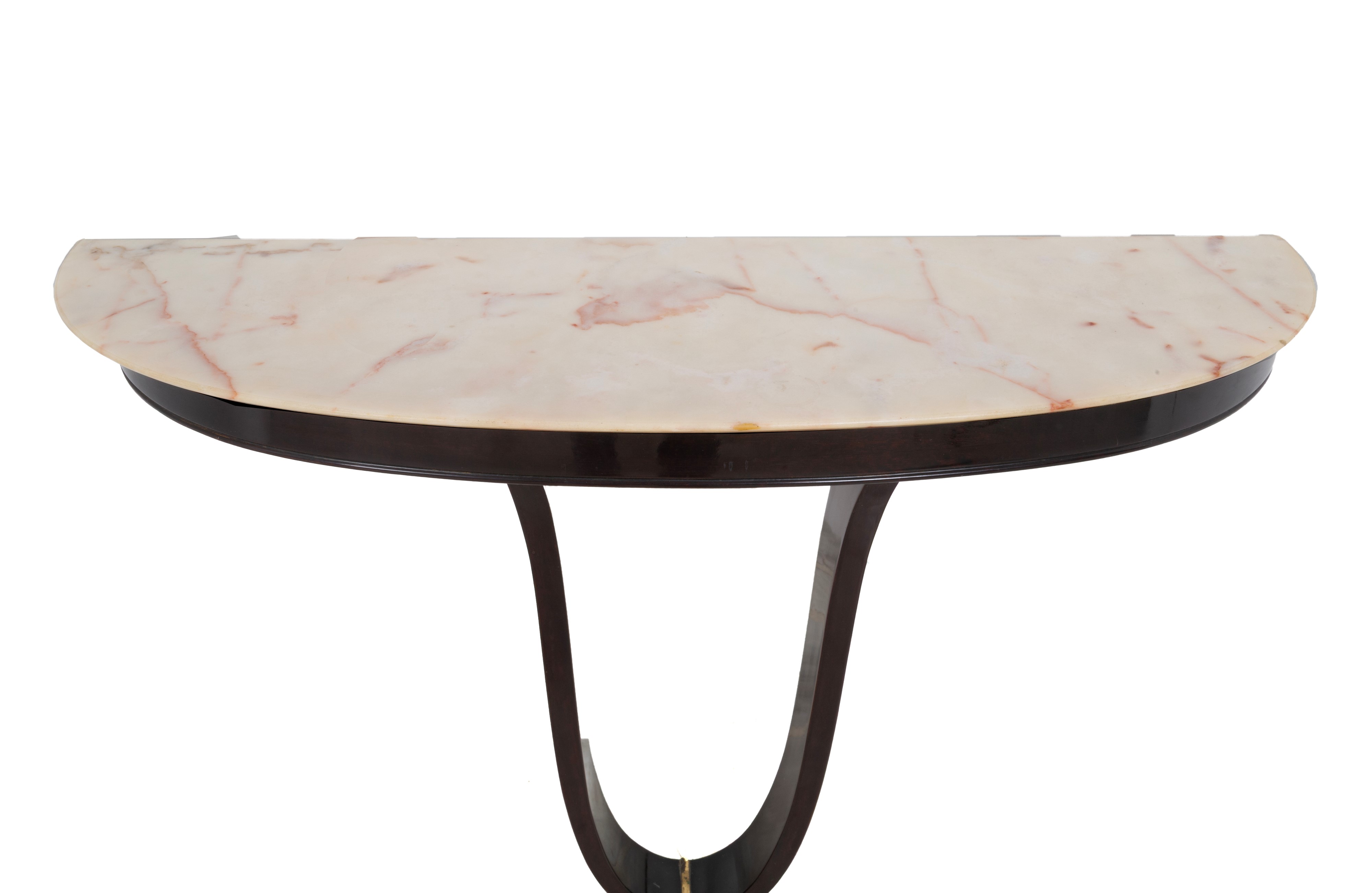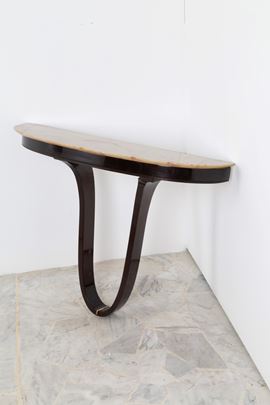 Consolle pensile in legno lastronato con piano in marmo. Anni '50.