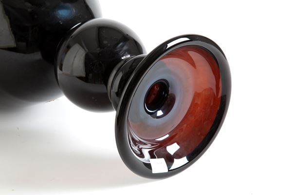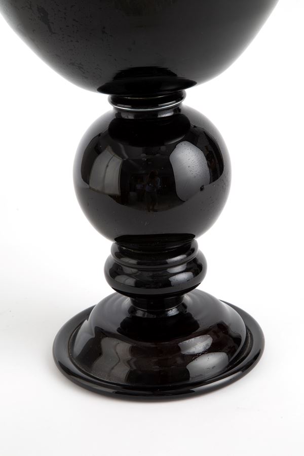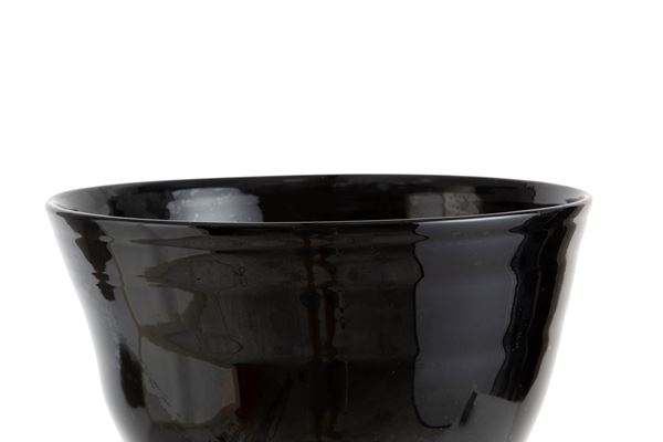 Vaso a coppa in pasta di vetro nero. XX secolo.
