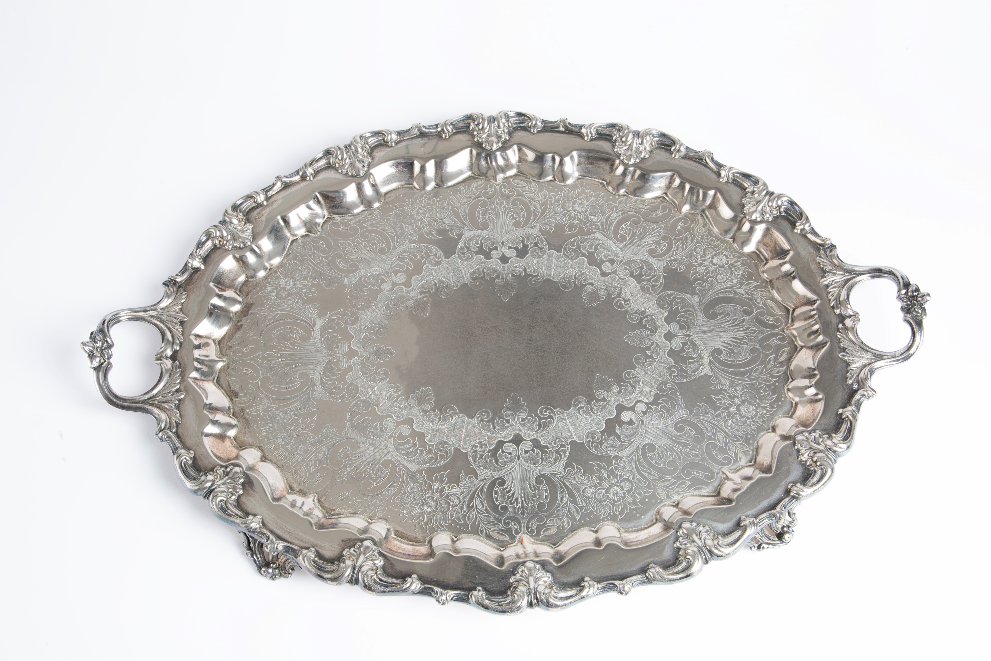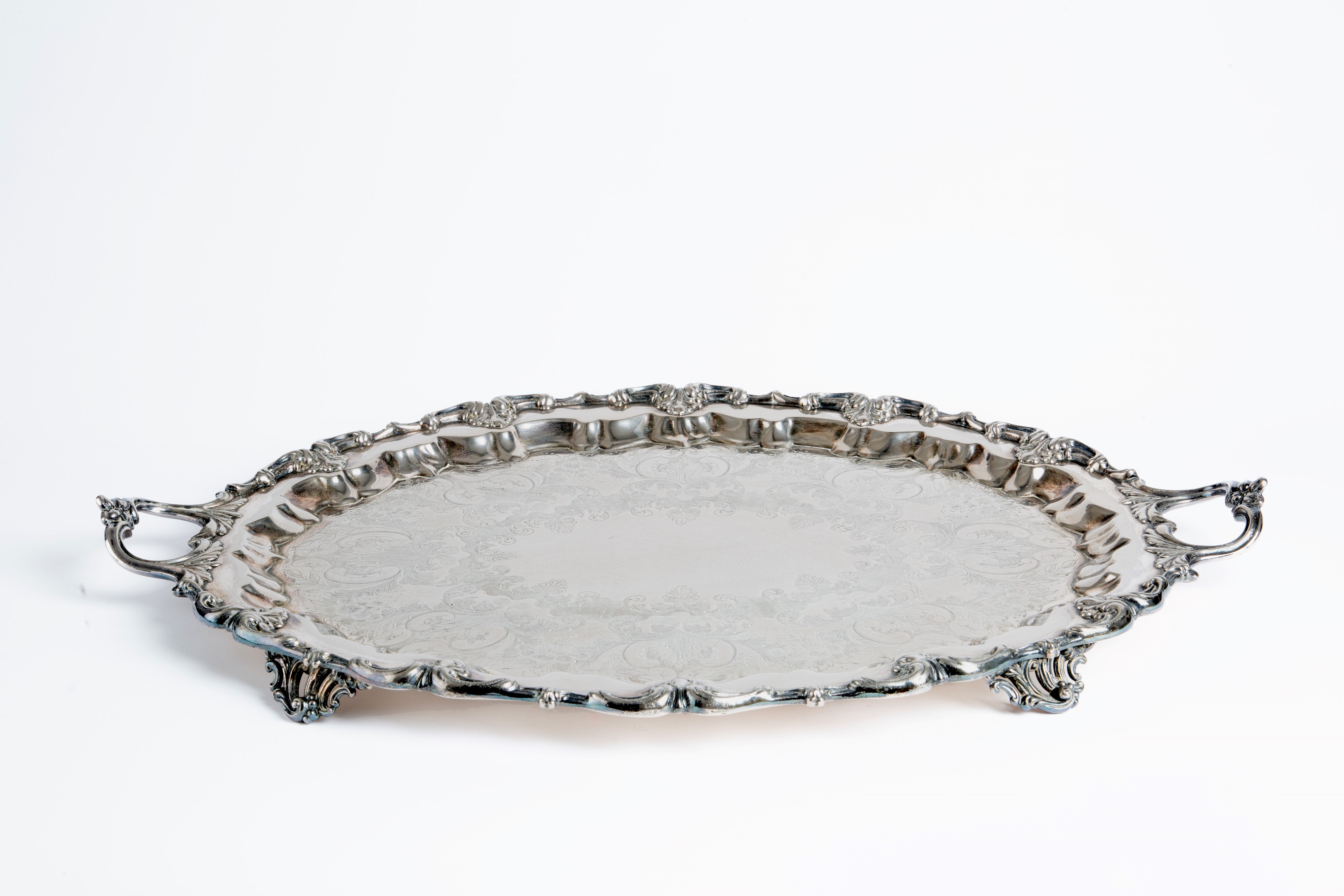 Vassoio in sheffield. Marchi sul fondo. Inghilterra. Fine XIX-inizi XX secolo.