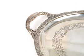 Vassoio in argento 925, gr. 2300 ca. Argentiere FACCIOLI, Milano. Punzoni sul fondo. Prima metà del XX secolo.