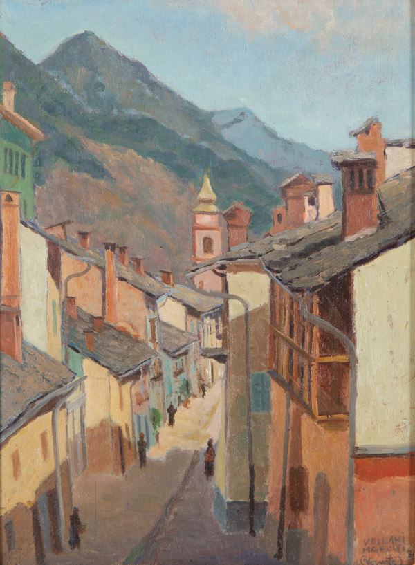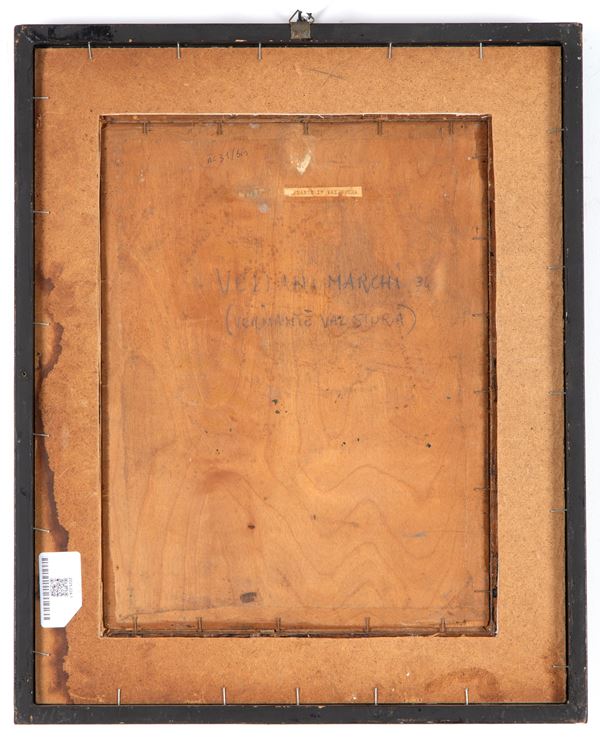 Dipinto olio su tavoletta raffigurante "VERNATE". Firmato, intitolato e datato '34 in basso a destra. In cornice in legno laccato.