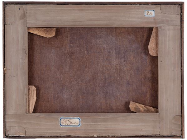 Dipinto olio su tela raffigurante "VEDUTA DELL'ISOLA DI SAN GIORGIO". Fine XIX secolo. In cornice in legno laccato e dorato.