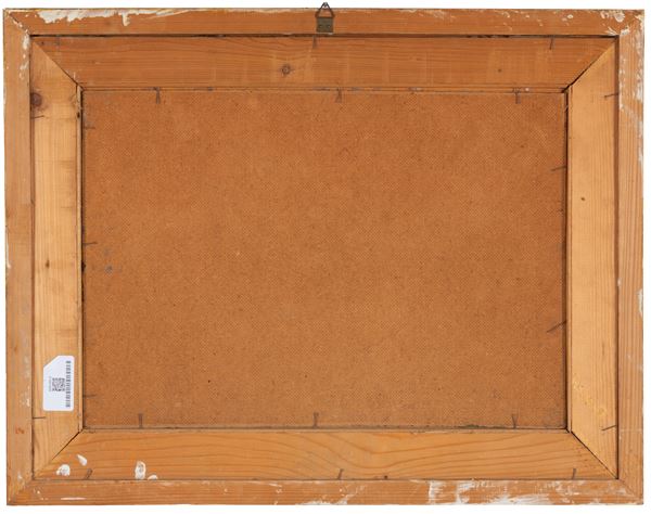 Dipinto olio su masonite raffigurante "DONNA AL POZZO". Firmato in basso a destra. In cornice.