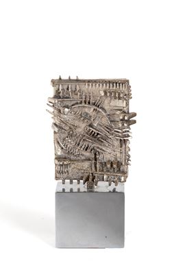 Scultura in argento raffigurante ''STELE''. Firmata alla base. Esemplare 5/75.
