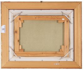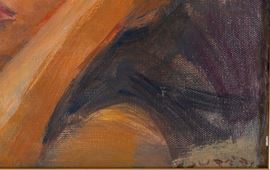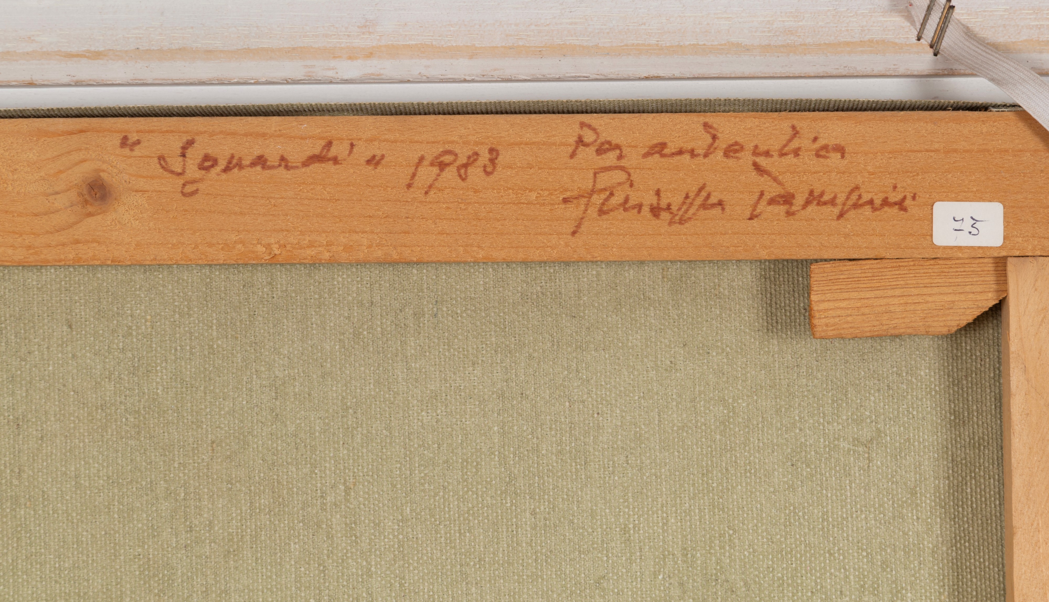 Dipinto olio su tela intitolato "SGUARDI". Firmato in basso a destra. Intitolato e datato 1983 sul retro. In cornice.