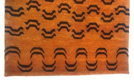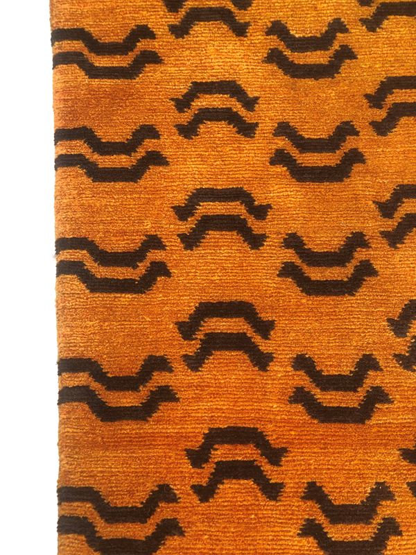 Tappeto Tibet disegno tigre. Fine XX secolo. Perfetto stato di conservazione. Date le dimensioni del tappeto, la foto principale è frutto dell'unione di più scatti.