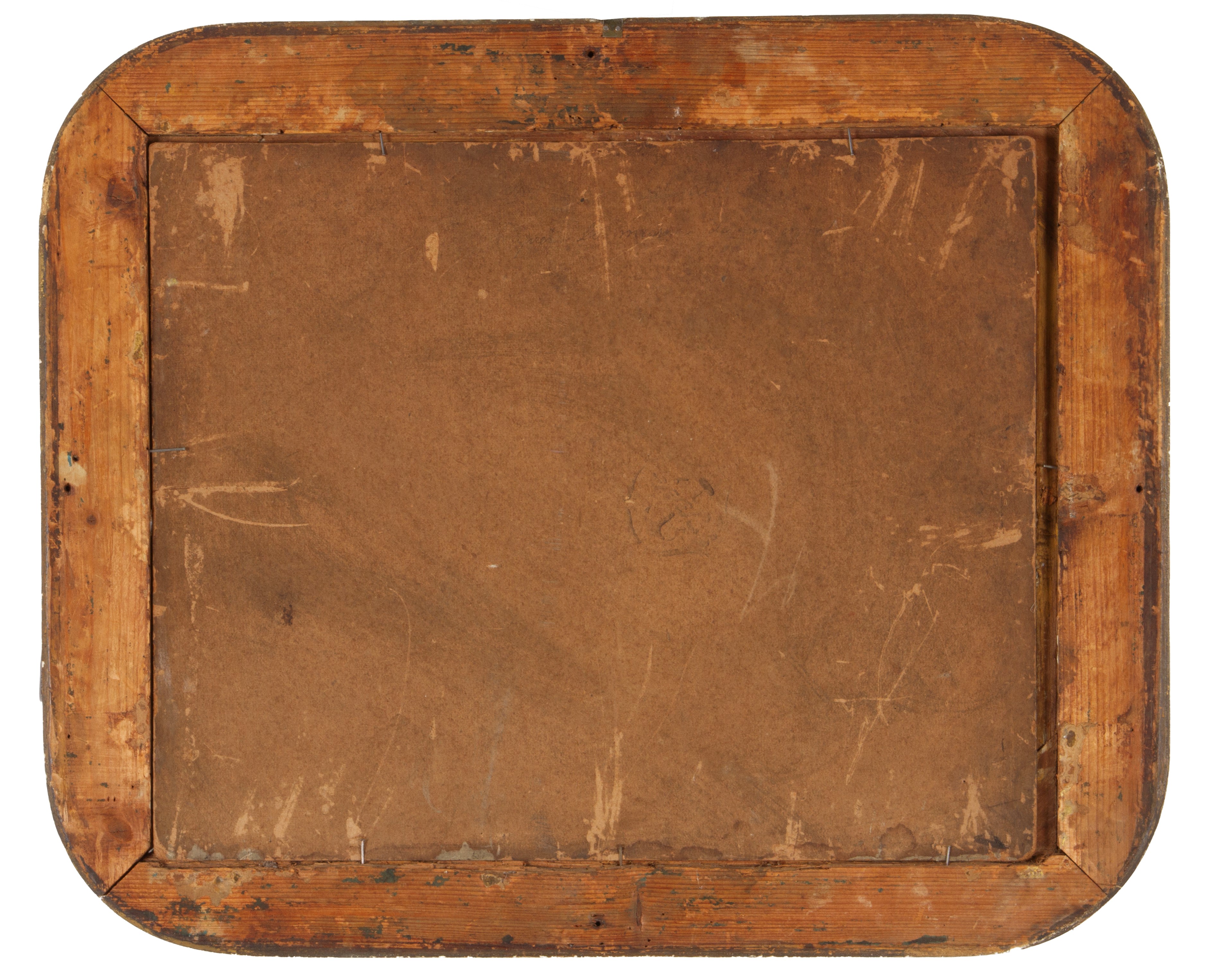 Bozzetto olio su cartone raffigurante "FIGURA FEMMINILE CON ANGELI". Fine XIX-inizi XX secolo. In cornice dorata. Piccole cadute di colore e lievi restauri.