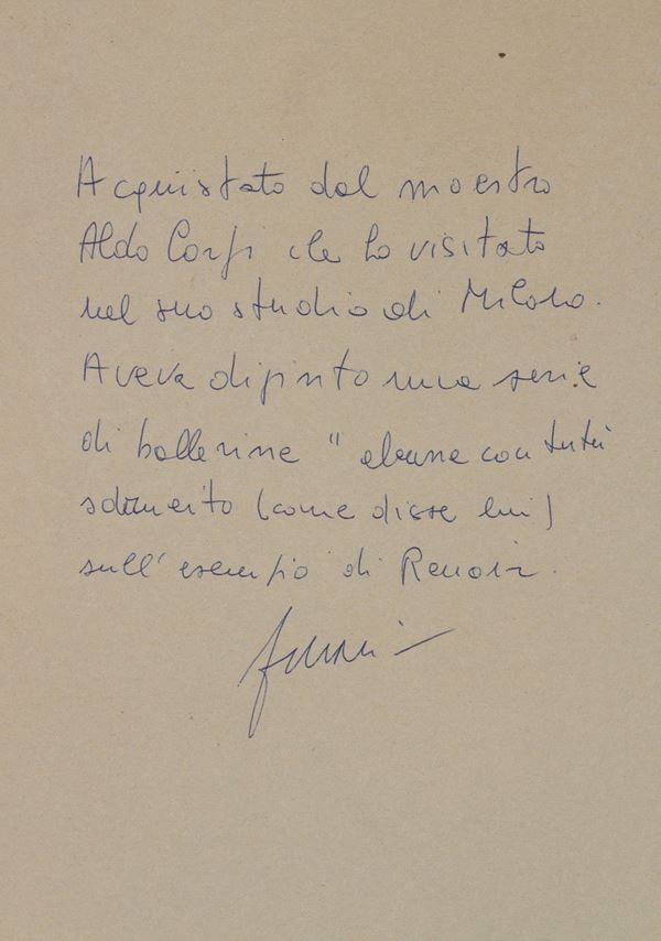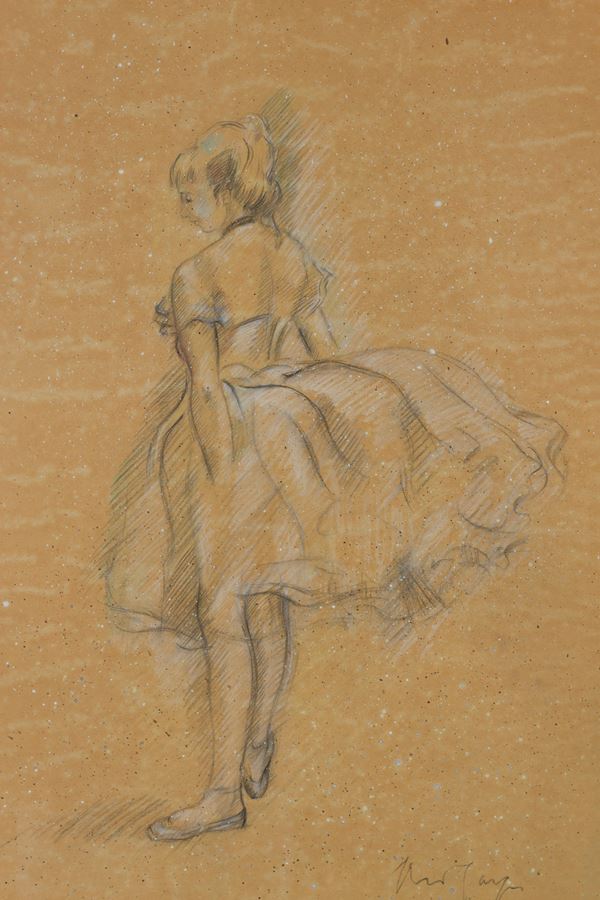 Tecnica mista su carta raffigurante "BALLERINA". Firmata in basso a destra. In cornice.