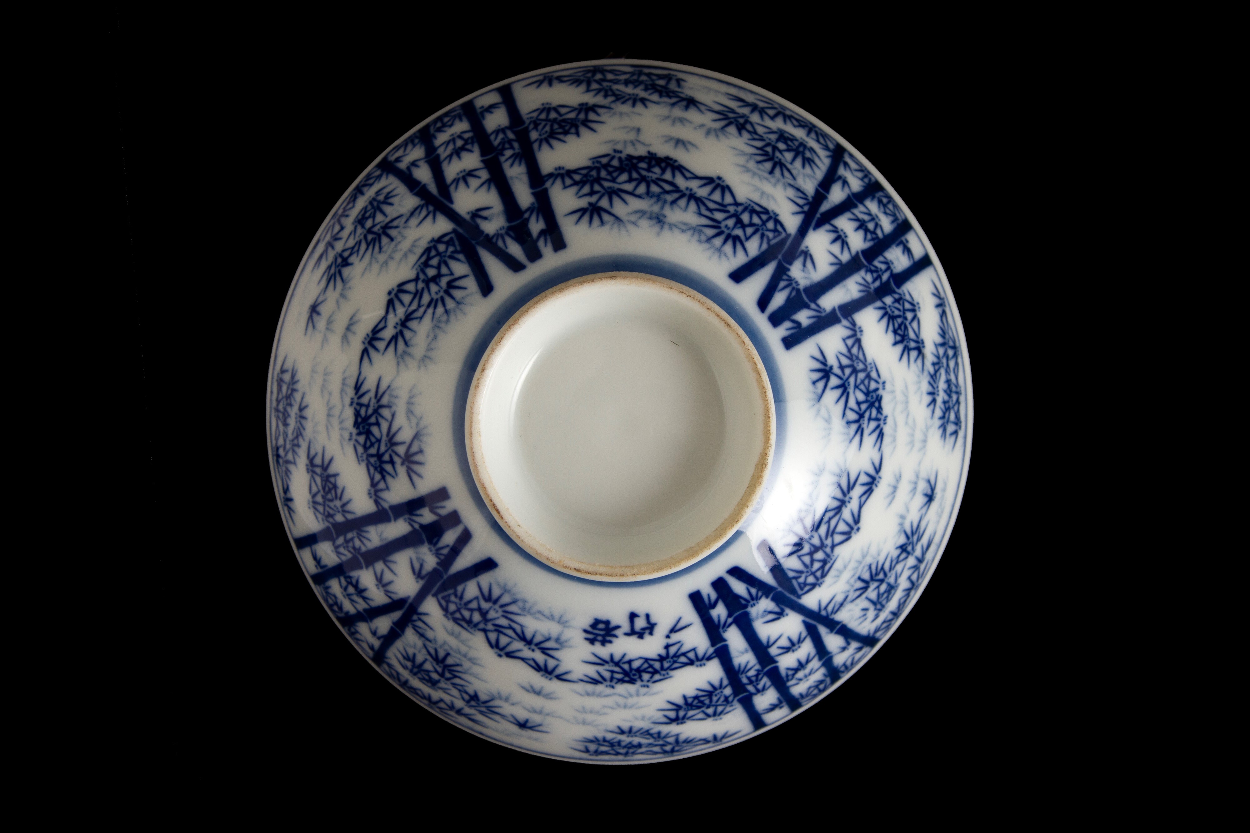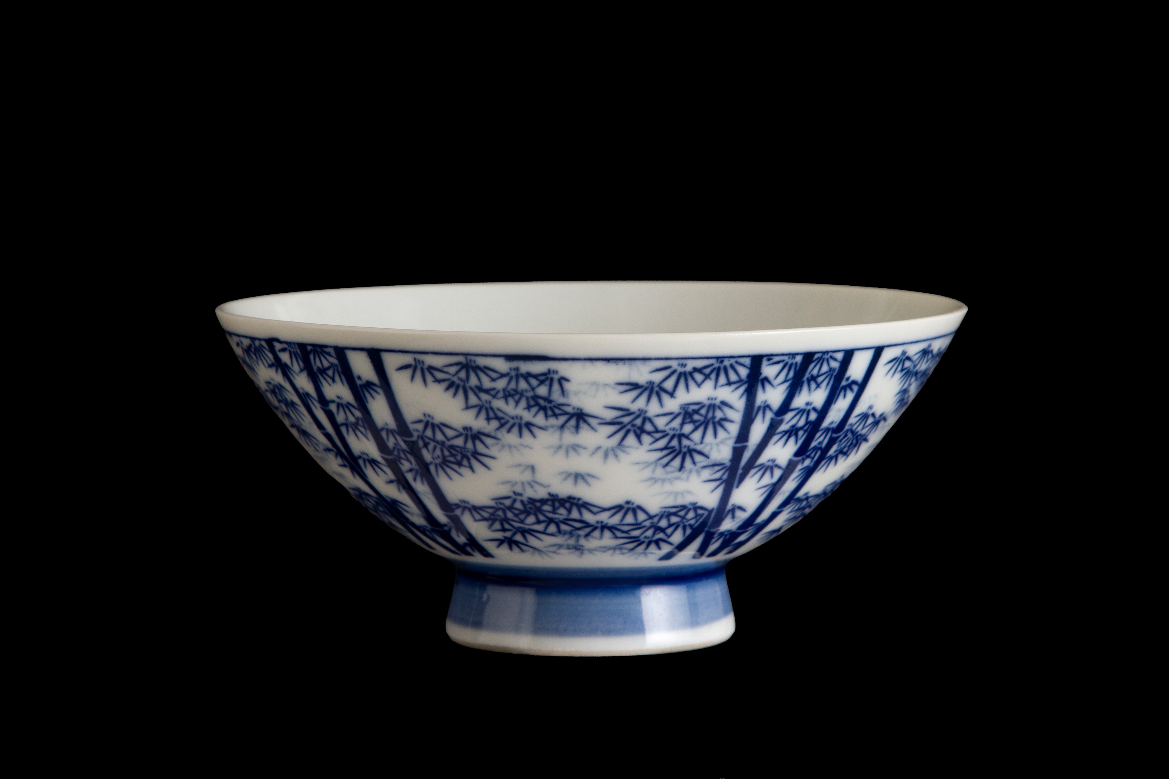 Ciotola in porcellana bianca e blu a motivi di bamboo. Giappone.