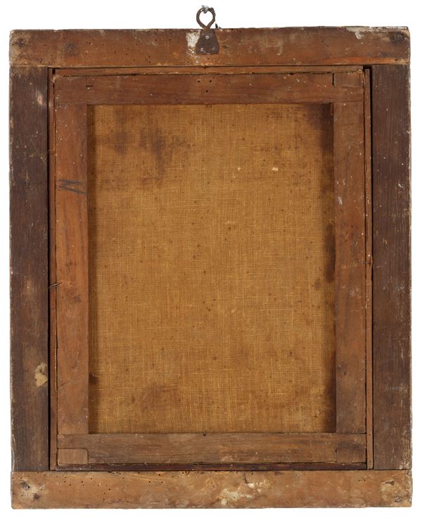 SCUOLA ROMANA DELLA FINE XVII SECOLO. Dipinto olio su tela raffigurante "MADONNA CON BAMBINO". In cornice in legno laccato.