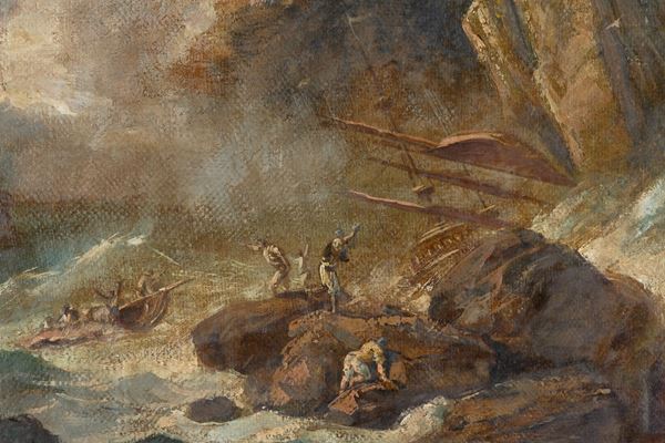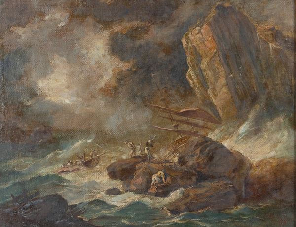 Dipinto olio su tela raffigurante "NAUFRAGIO". Firmato e datato TOM WILLER 1880 in basso a destra. In cornice.
