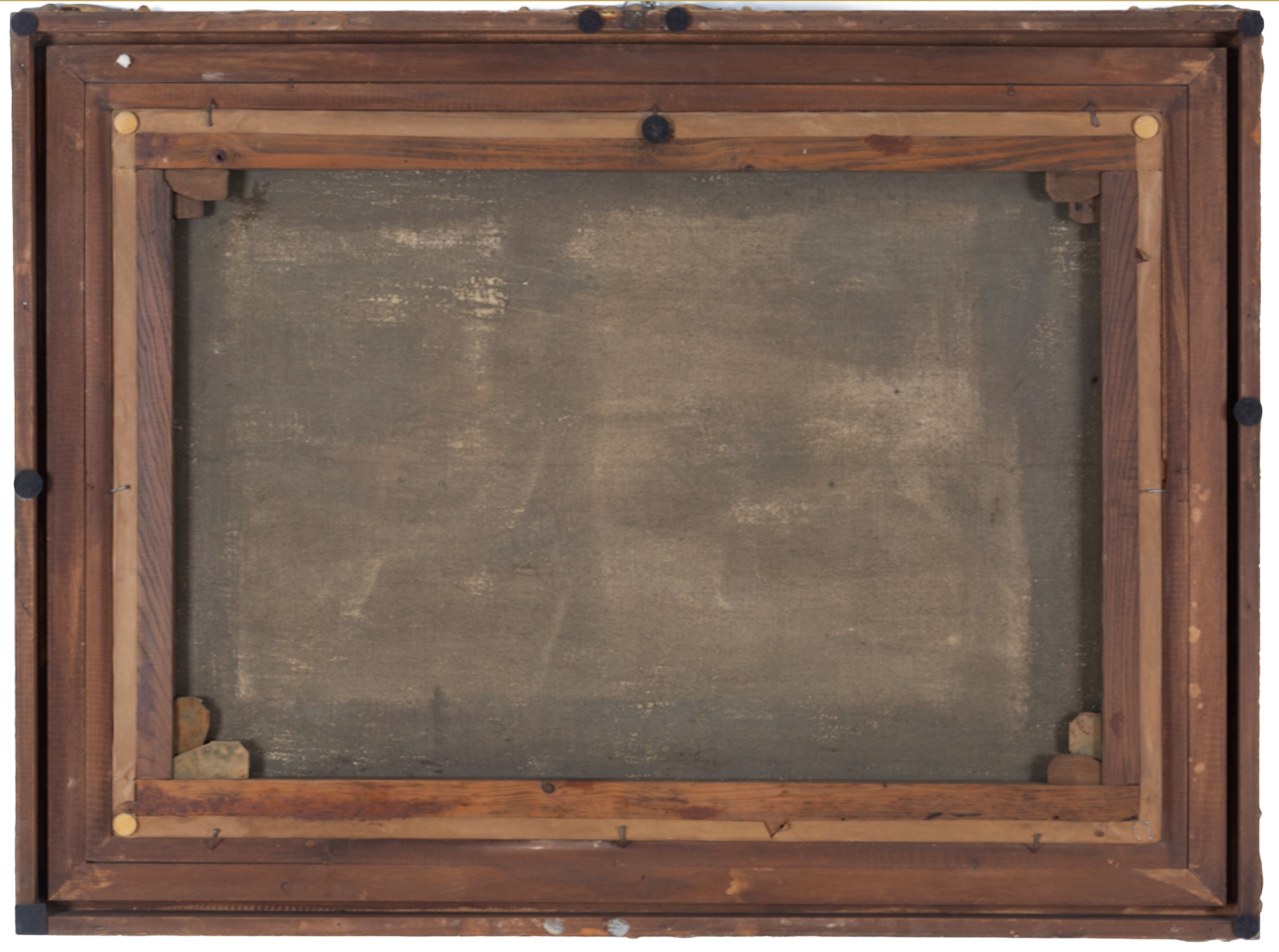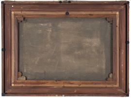 Dipinto olio su tela raffigurante "PAESAGGIO CON FIGURE". Fine XIX secolo. In cornice in legno dorato.