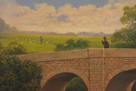 Dipinto "PAESAGGIO FLUVIALE CON PONTE"