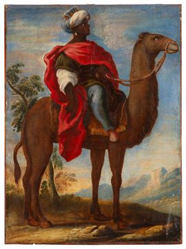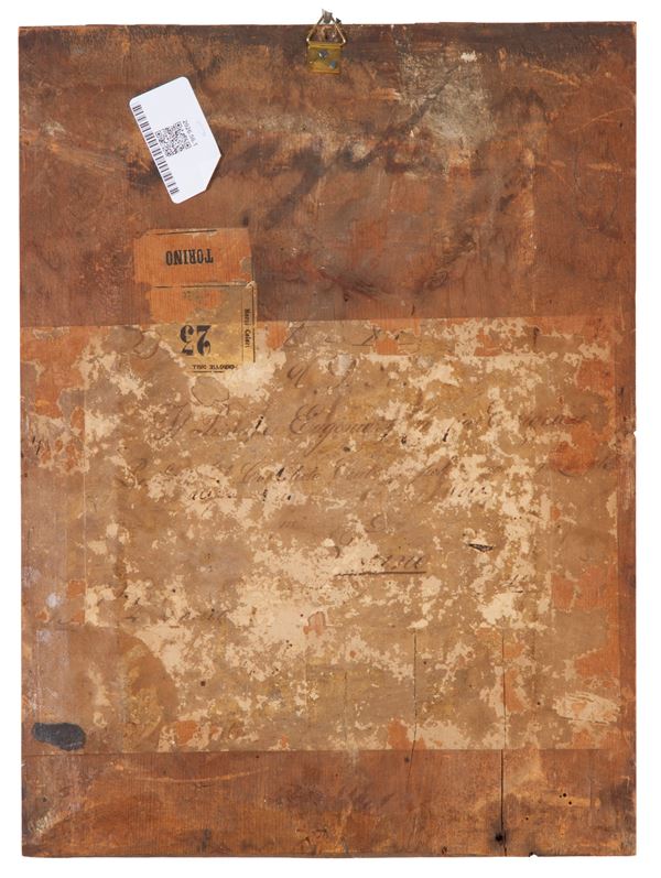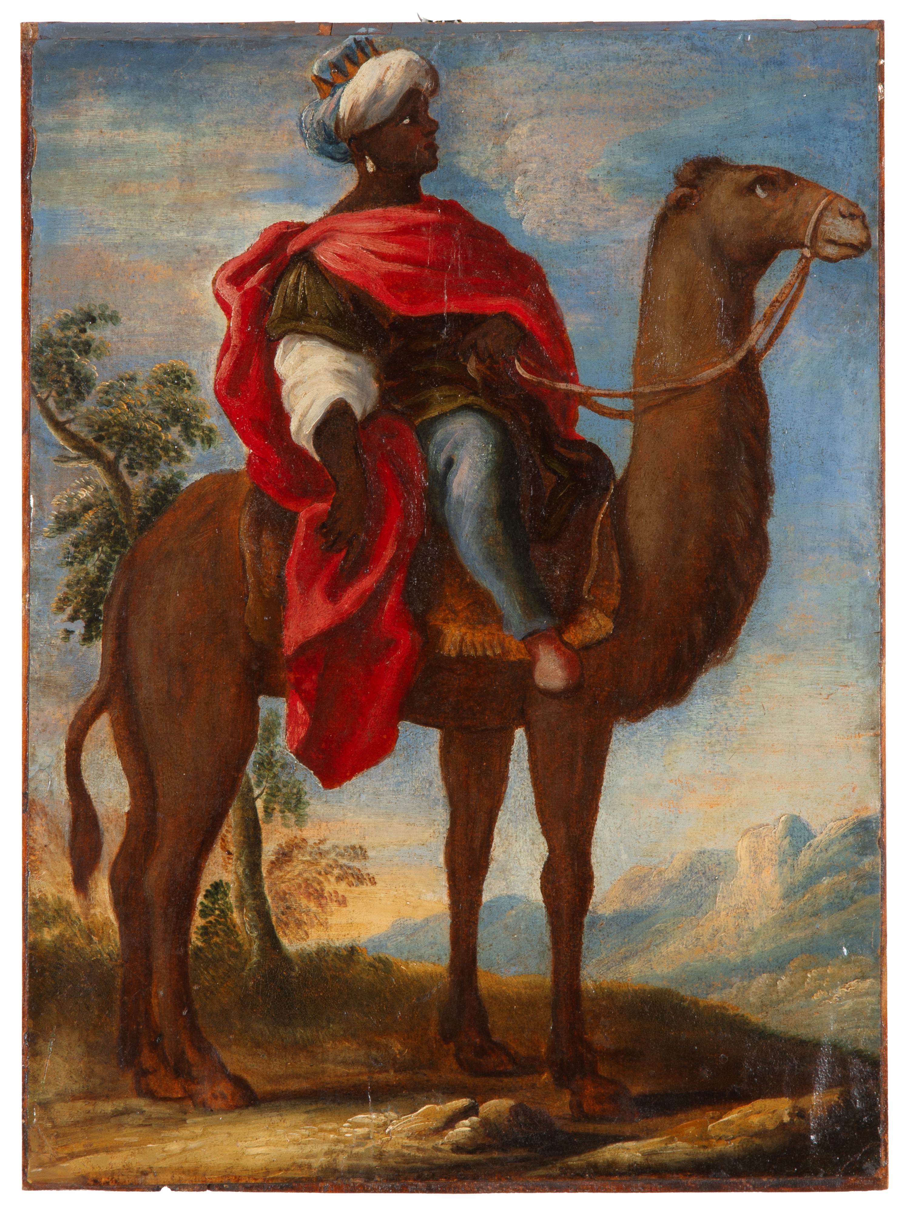 Dipinto olio su cartoncino applicato su tavola affigurante "RE MAGIO BALDASSARRE". XVIII secolo. Lievi restauri.