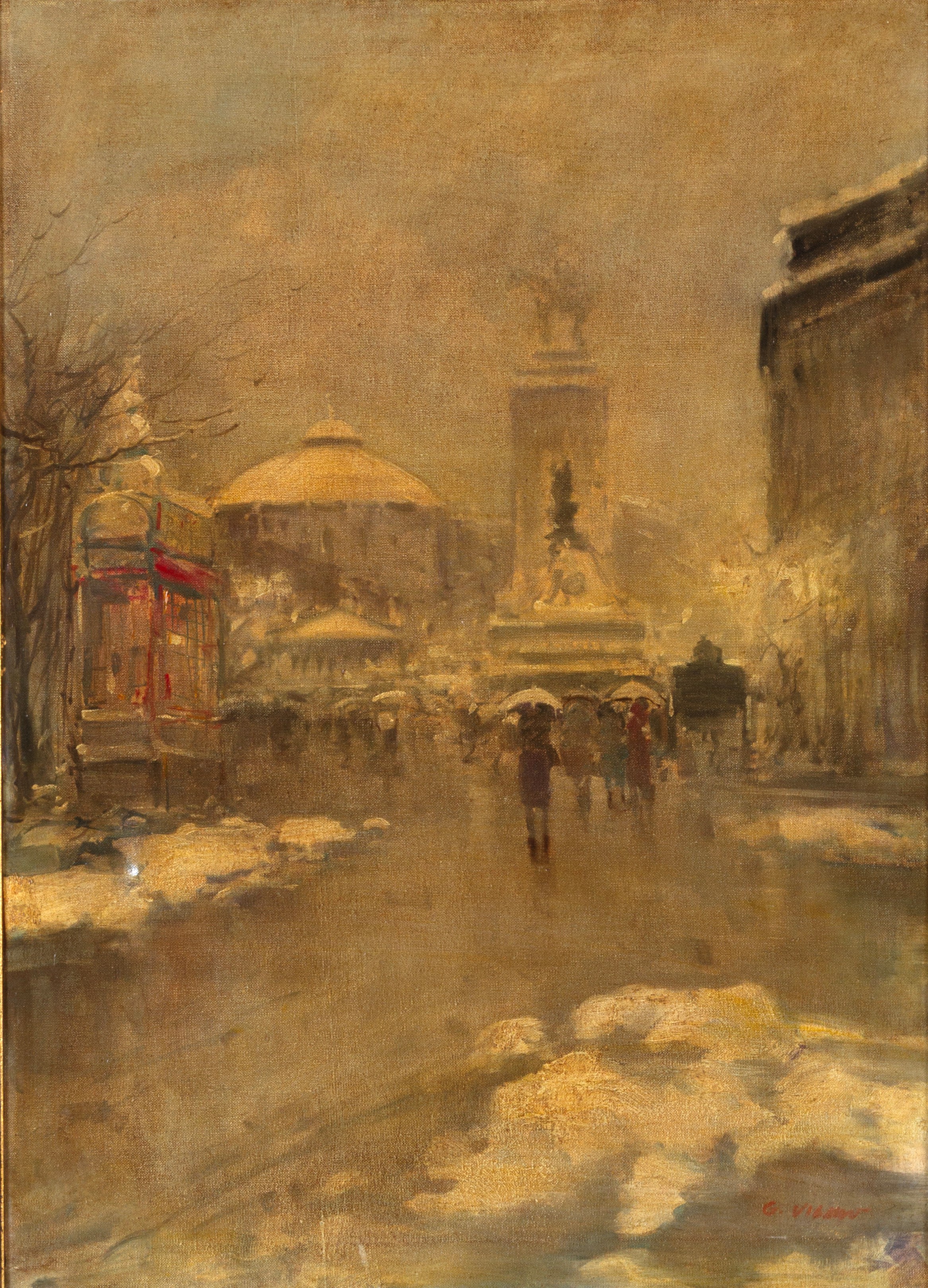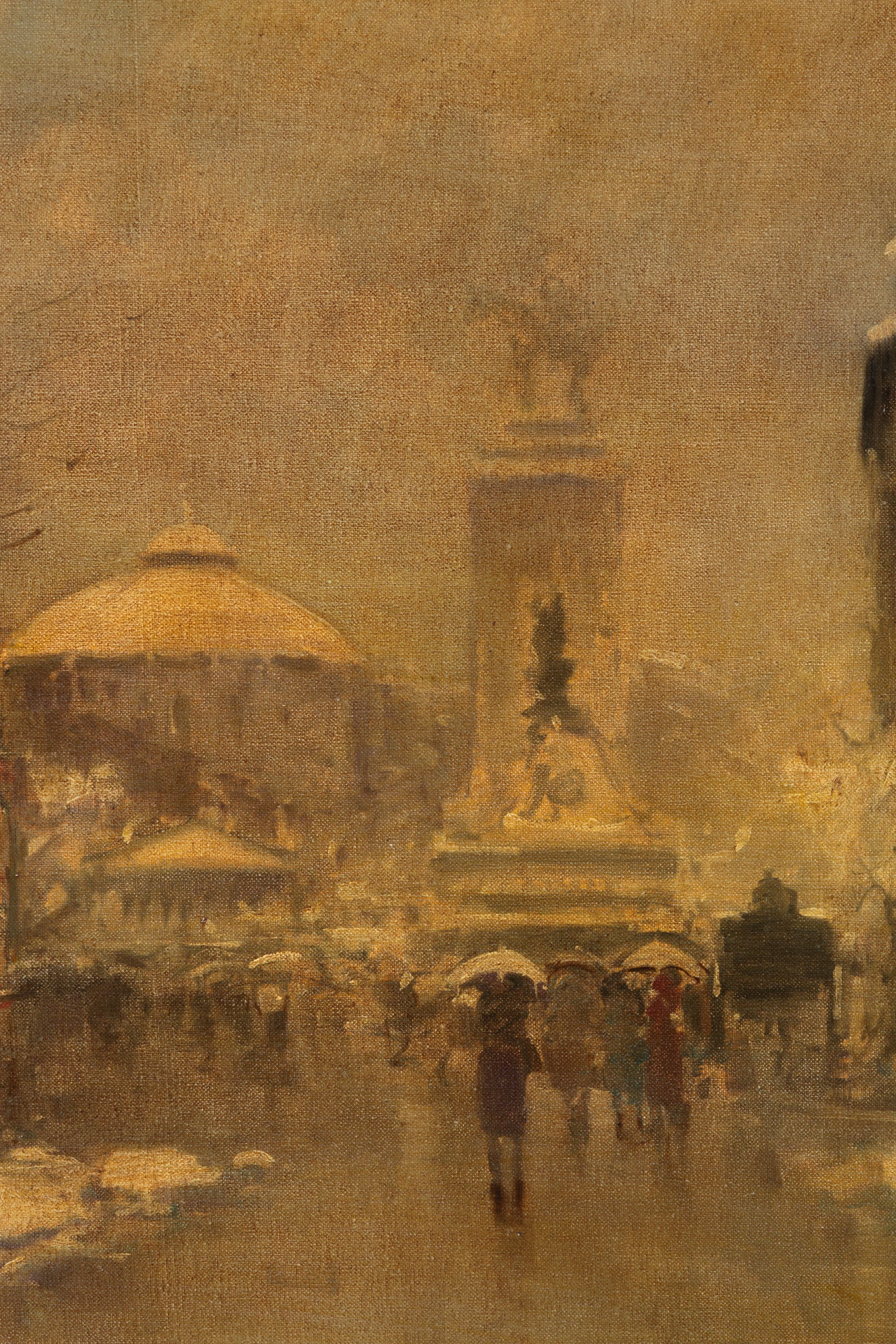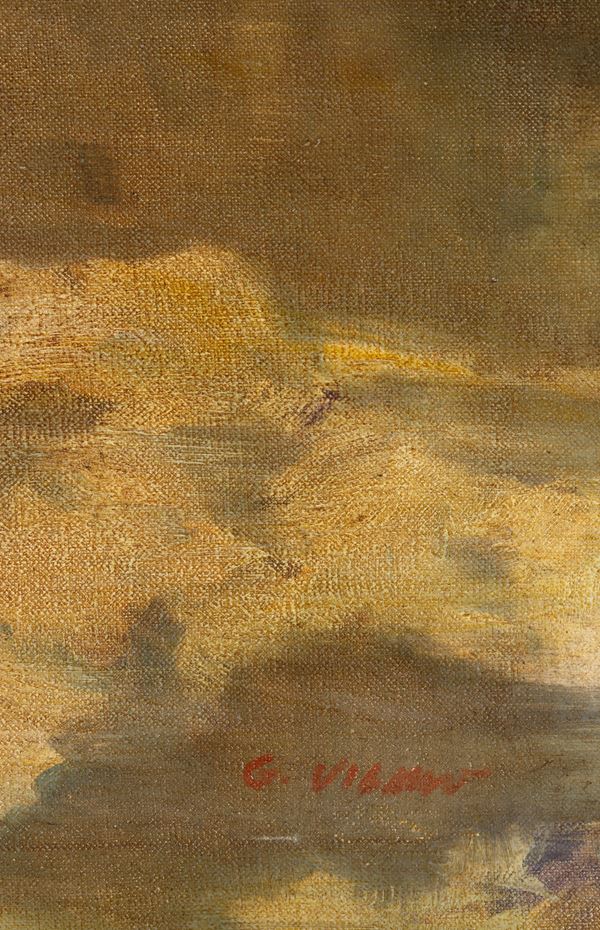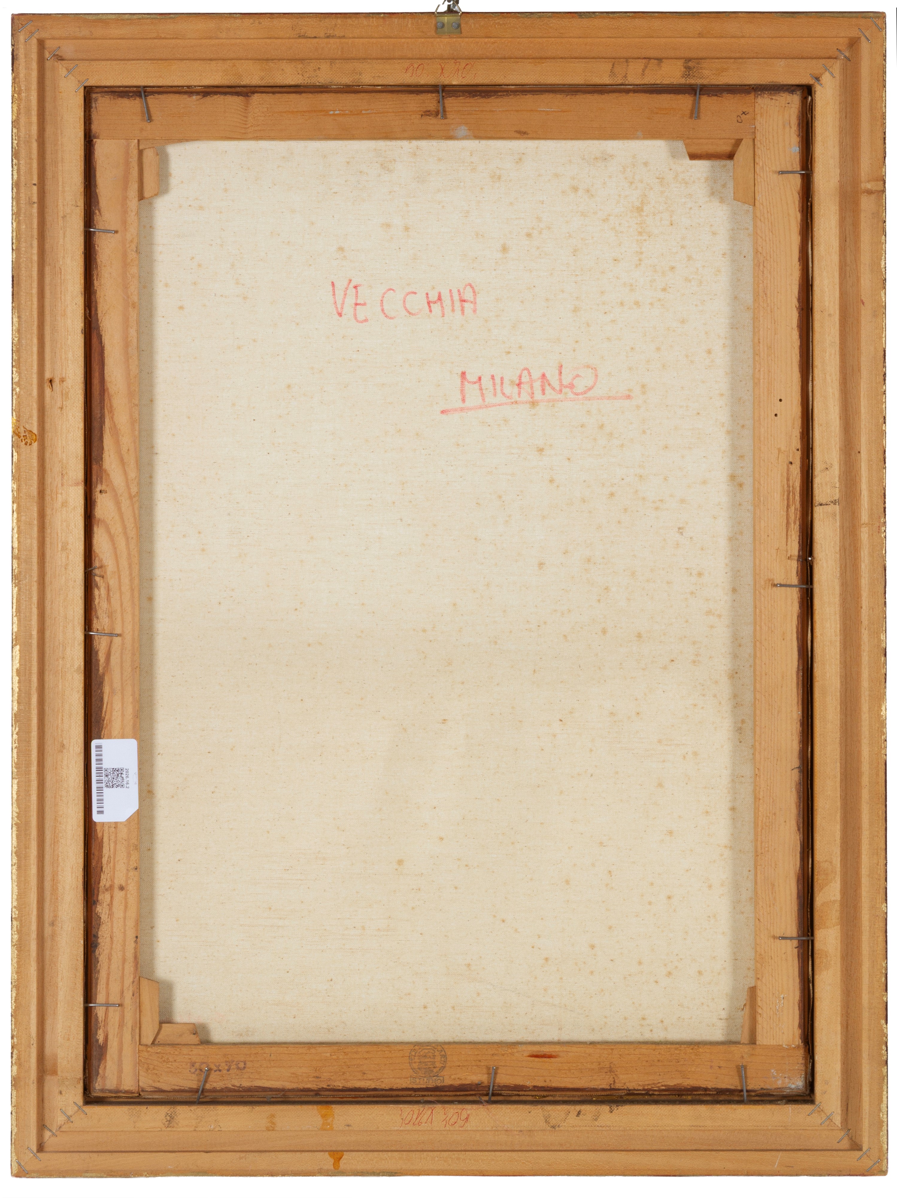 Dipinto olio su tela intitolato "VECCHIA MILANO" sul retro. Firma non identificata in basso a destra. XX secolo. In cornice.