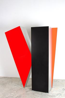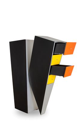 Mobile scultura da centro in legno e formica intitolato "I CONTENITORI DI SOGNI". 2008. Lievi difetti.