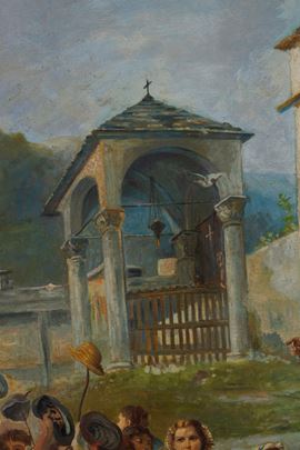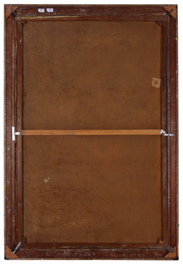 Dipinto olio su tela raffigurante "LA PARTENZA DEI VOLONTARI". Firma in basso a destra. Inizi XX secolo. Lievi restauri.