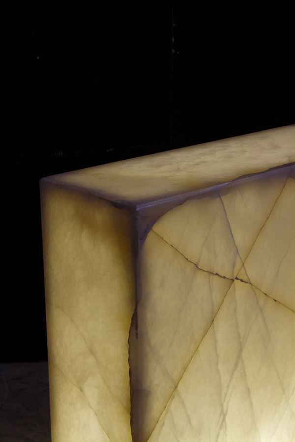 Lampada da terra a forma di parallelepipedo in alabastro. XX secolo.