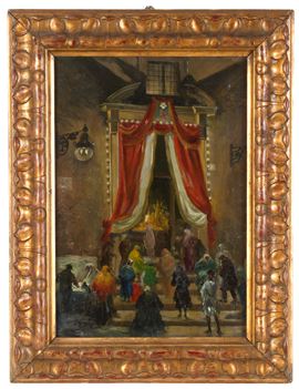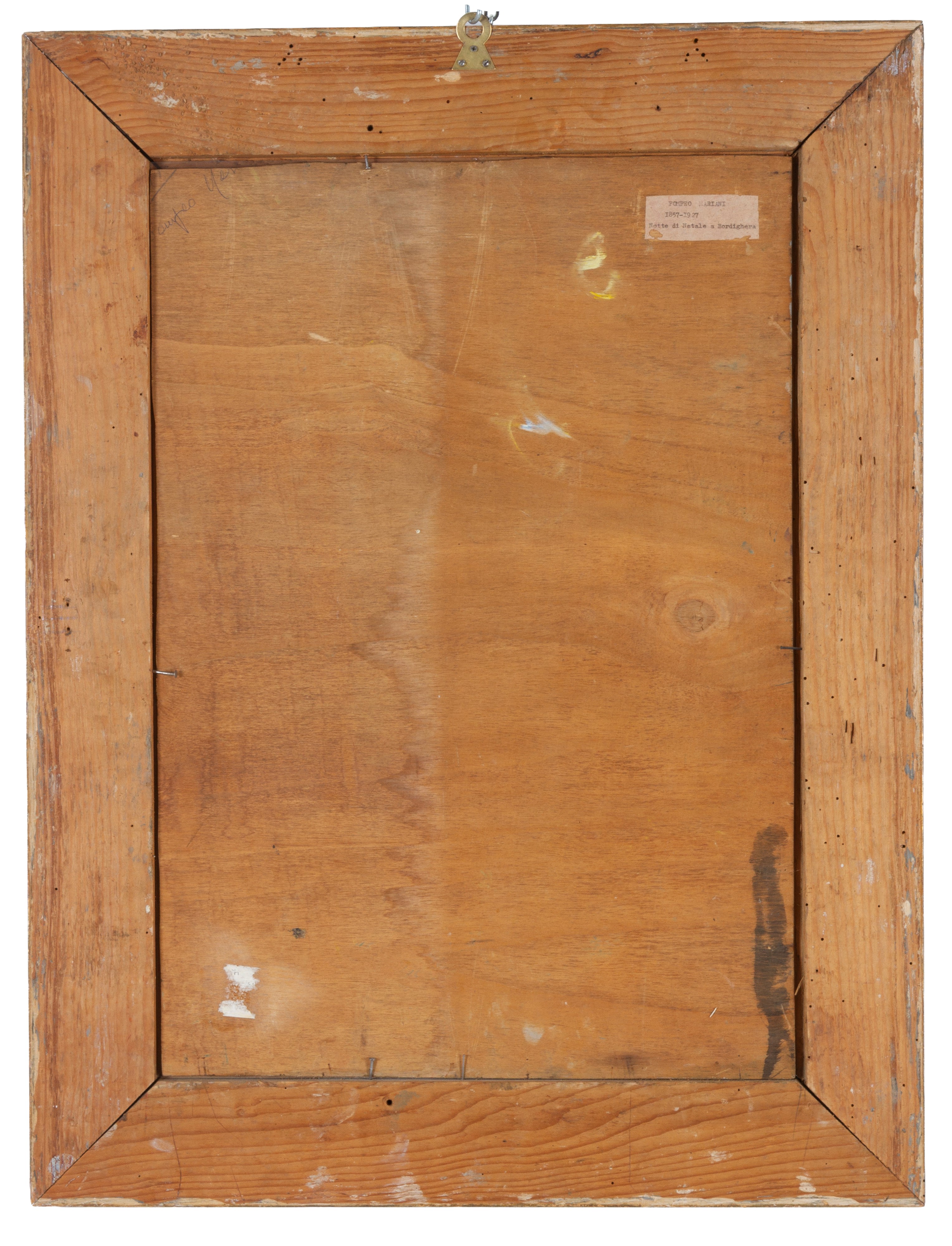 Dipinto olio su tavoletta raffigurante "NOTTE DI NATALE A BORDIGHERA". Cartiglio sul retro. In cornice.