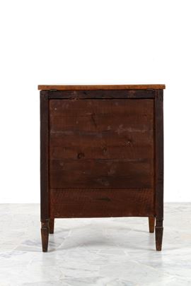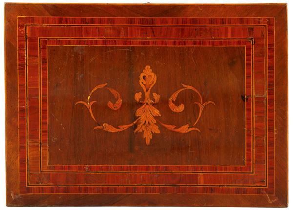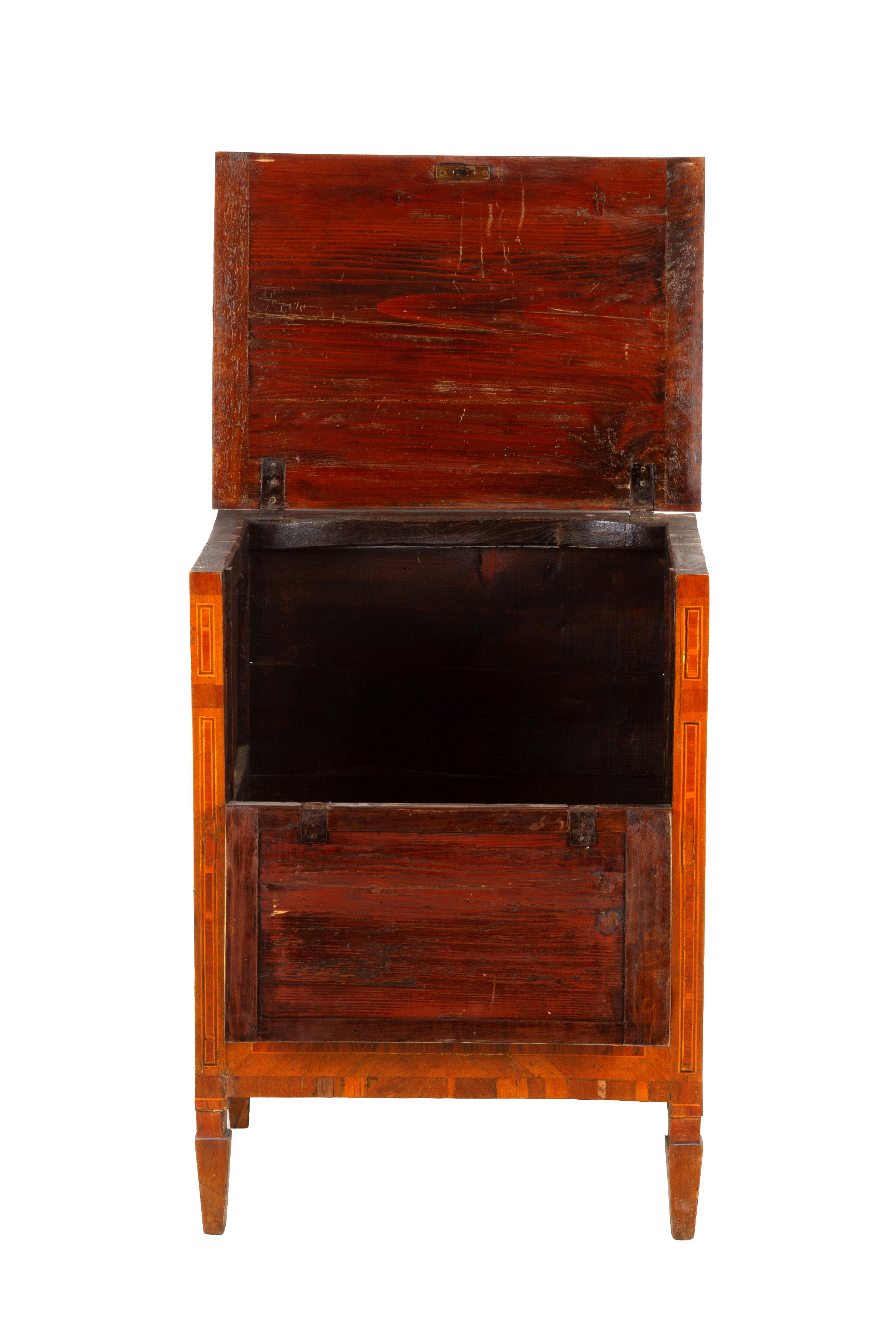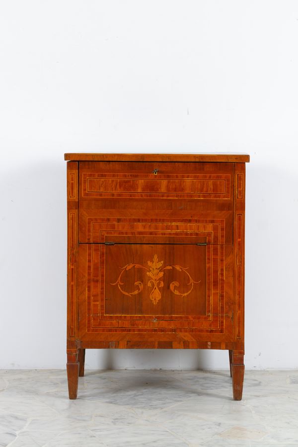 Mobiletto lastronato in legni vari trasformabile in comoda. Periodo Luigi XVI. Lievi difetti.